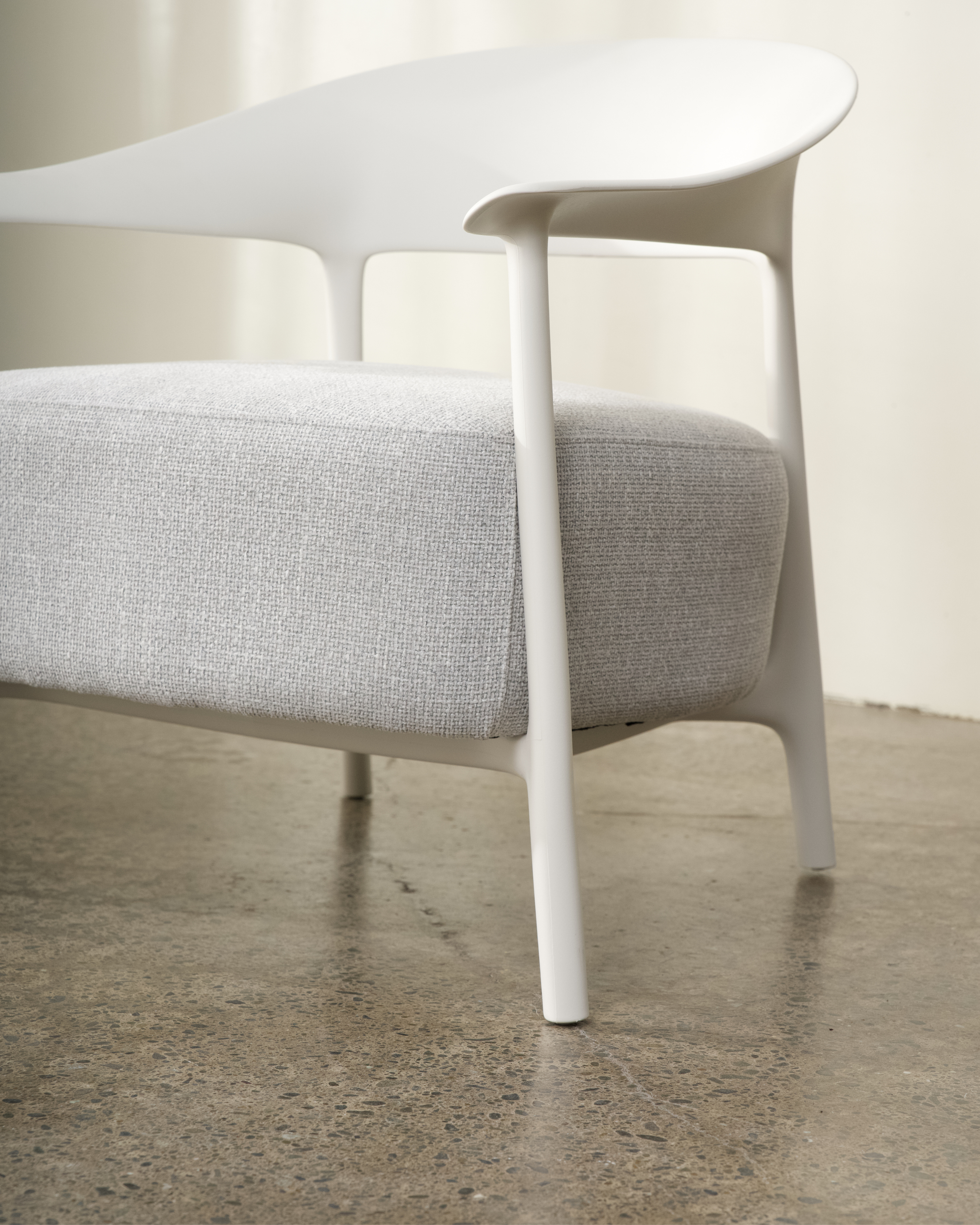 The Alan Chair is a refined balance of sculptural form and everyday comfort. Featuring a softly curved frame that wraps seamlessly into tapered legs, it delivers both elegance and stability. The generously cushioned seat is upholstered in a textured fabric, bringing a tactile warmth that contrasts beautifully with the sleek structure. Perfect as a statement occasional chair or as part of a considered seating arrangement, the Alan Chair combines contemporary design with timeless appeal.