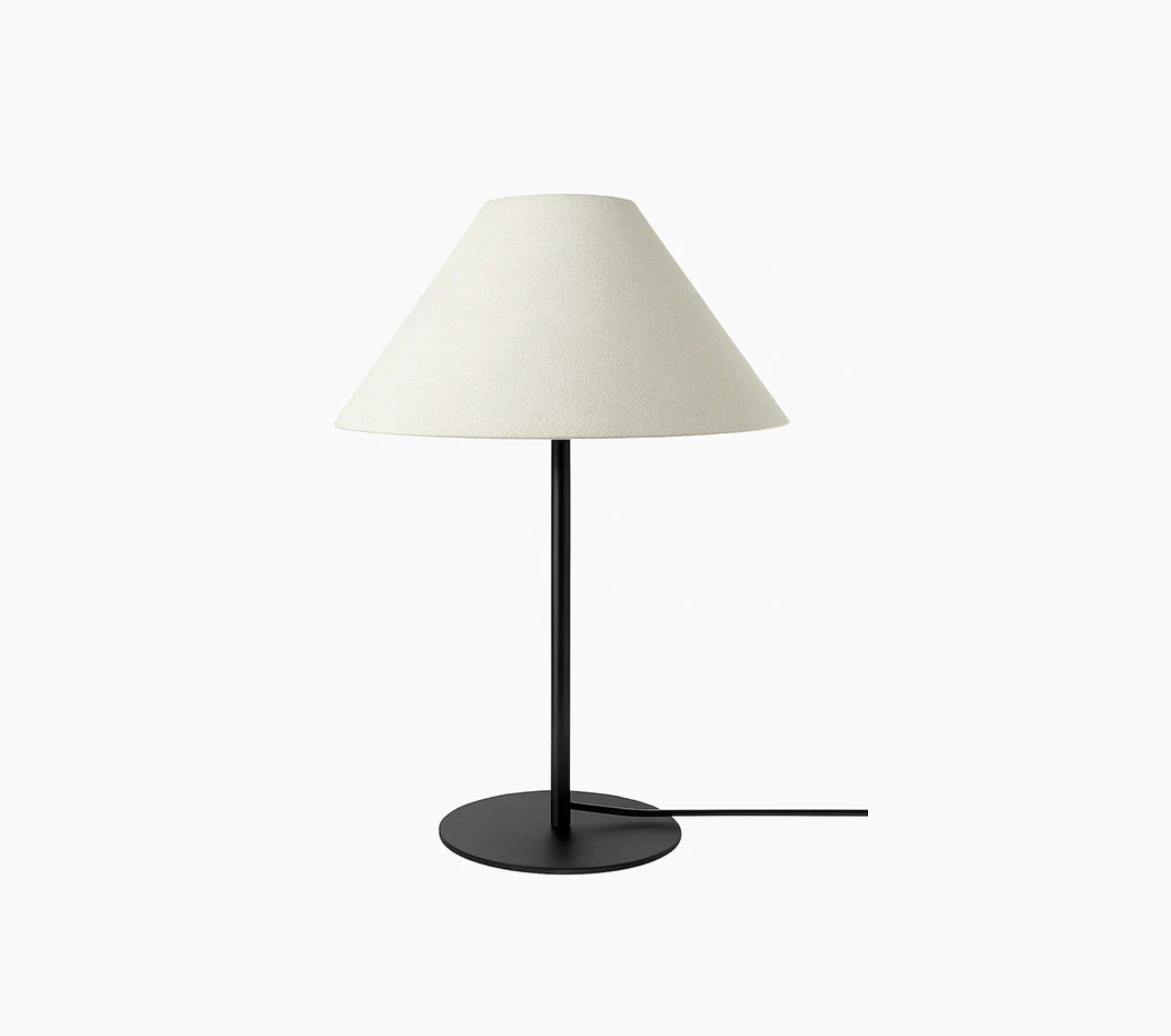 A refined take on classic lighting. This table lamp pairs a slim black stem with a round base, balanced by a natural fabric shade that diffuses light softly for a warm, inviting glow. Its clean lines and timeless form make it an effortless addition to bedsides, desks, or living spaces, blending seamlessly into both modern and traditional interiors. November arrival
