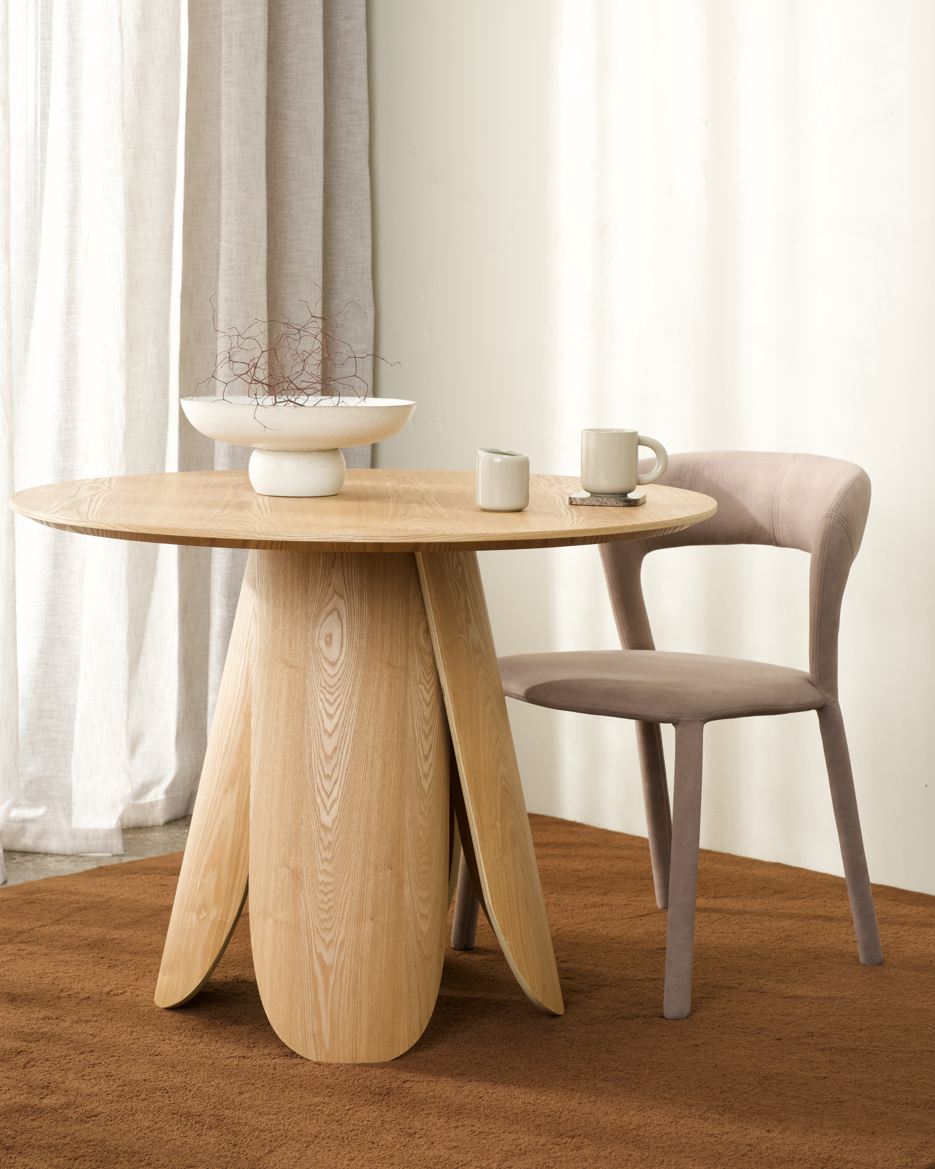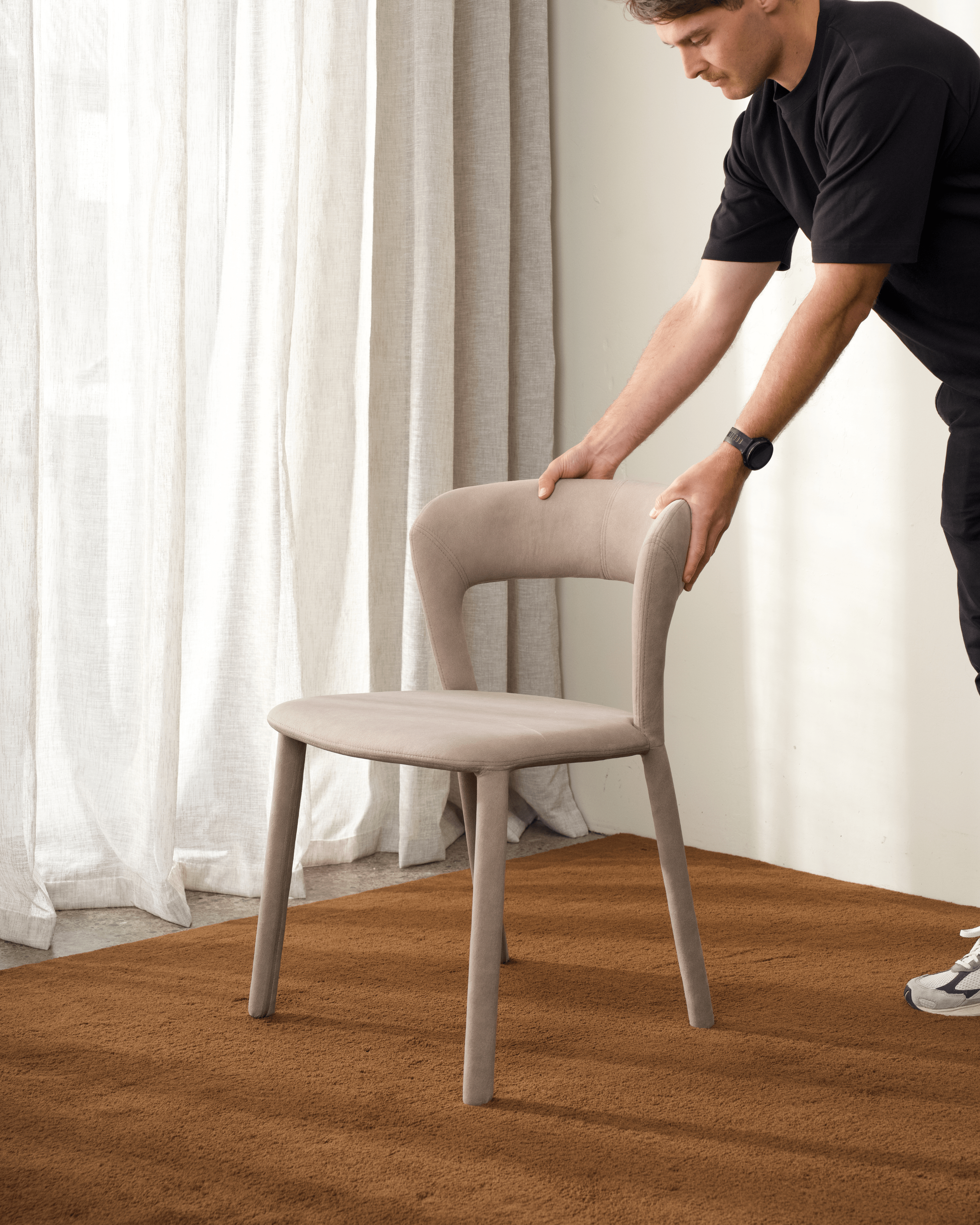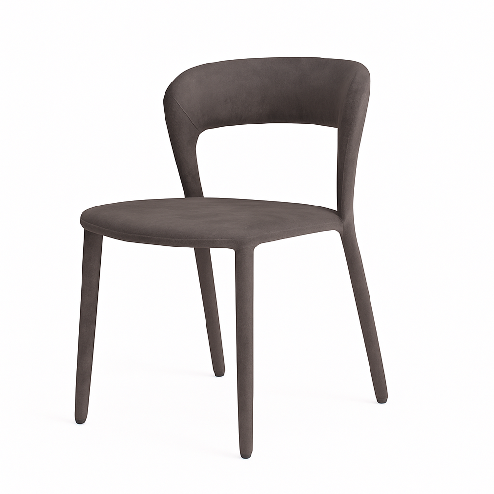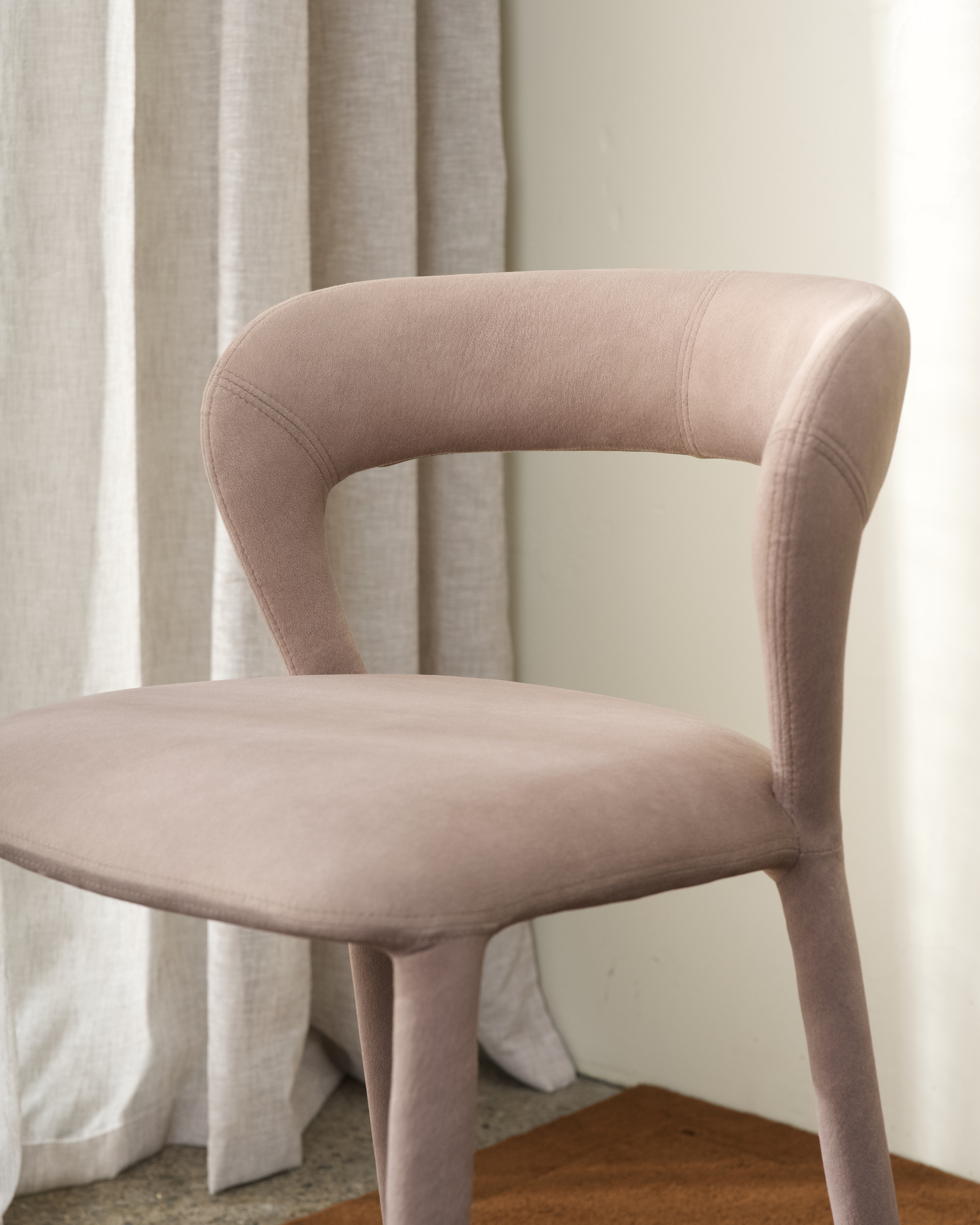 The Beu Chair is defined by its soft curves and fully upholstered form. Gentle lines and a considered silhouette give it a quiet confidence — designed to complement, not compete. Upholstered from top to toe in a muted brown fabric, Beu offers subtle texture and warmth. The curved backrest provides relaxed support, making it suited to everyday use around the dining table or as an occasional chair. Thoughtfully made and easy to live with, Beu brings balance and softness to contemporary spaces.