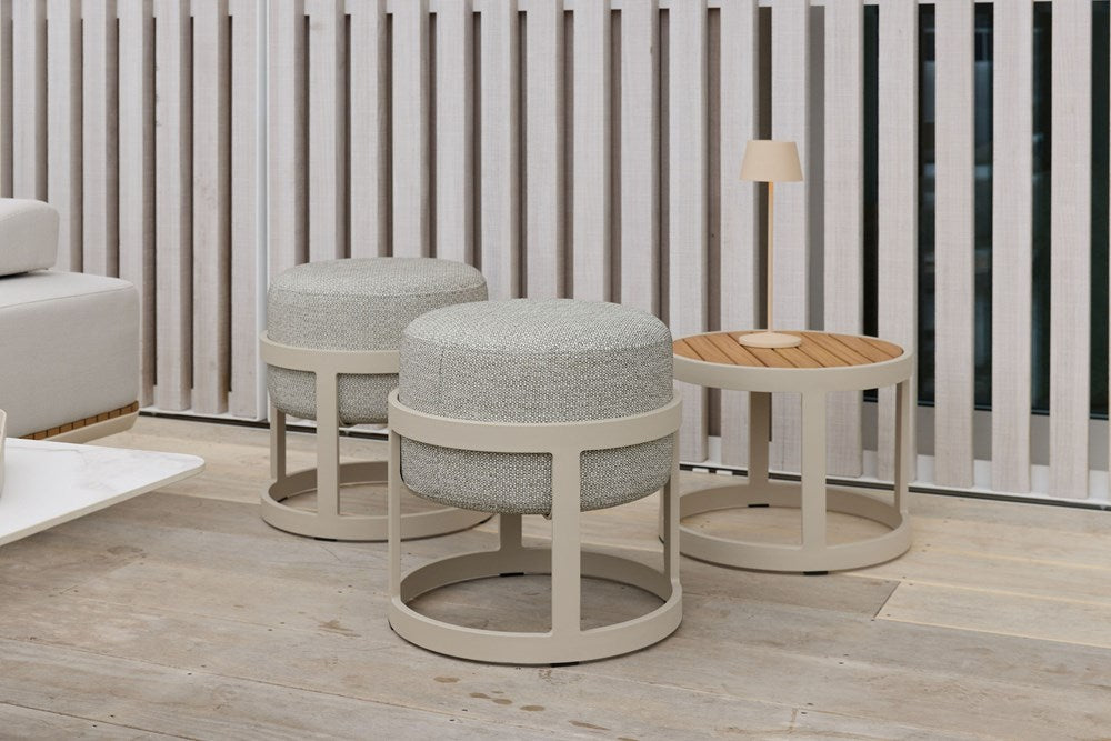 Boon Seating Set is a simple yet functional concept of stackable stools and small table. It was designed for small outdoor spaces. The stools and table can easily be stacked when not in use and occupy minimum space. UV protected quickdry outdoor fabric. All frames constructed with powder coated aluminium for lightweight durability in mind. Set comes with 2 x stools and 1 x table.