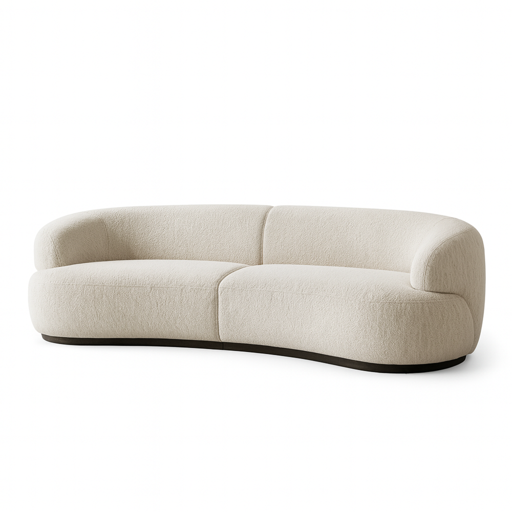 The Drift Sofa is designed for spaces that flow. Its sweeping, sculptural form creates a soft sense of movement, while the low back and generous cushioning offer laid-back comfort with refined appeal. Upholstered in a textured, natural-toned fabric and grounded by a dark timber base, Drift is equal parts statement and sanctuary—perfect for open-plan living or creating calm in the corner of a room.