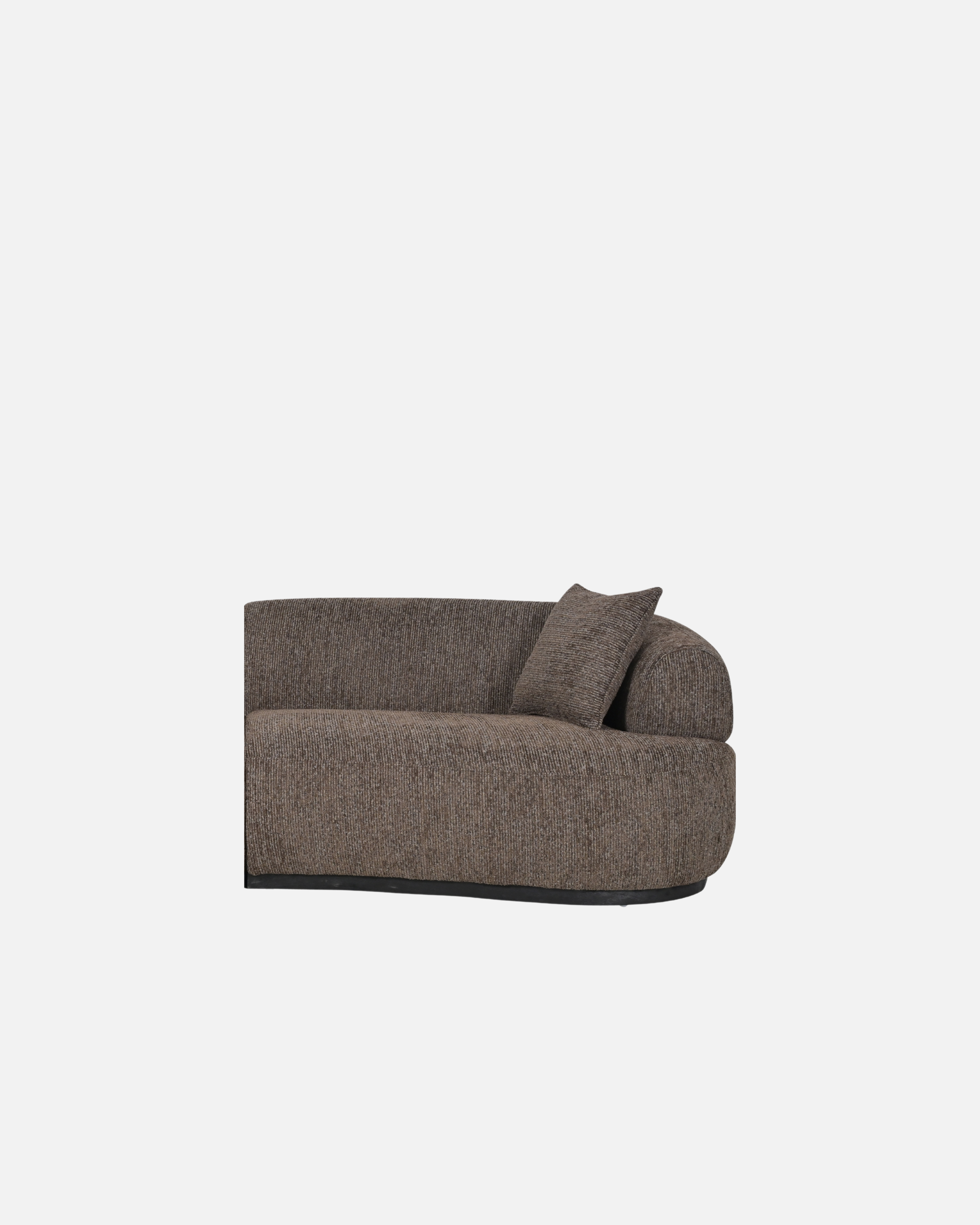 Upholstered in textured, natural-toned fabric and grounded by a dark timber base, Drift is equal parts statement and sanctuary—perfect for open-plan living or creating calm in the corner of a room.