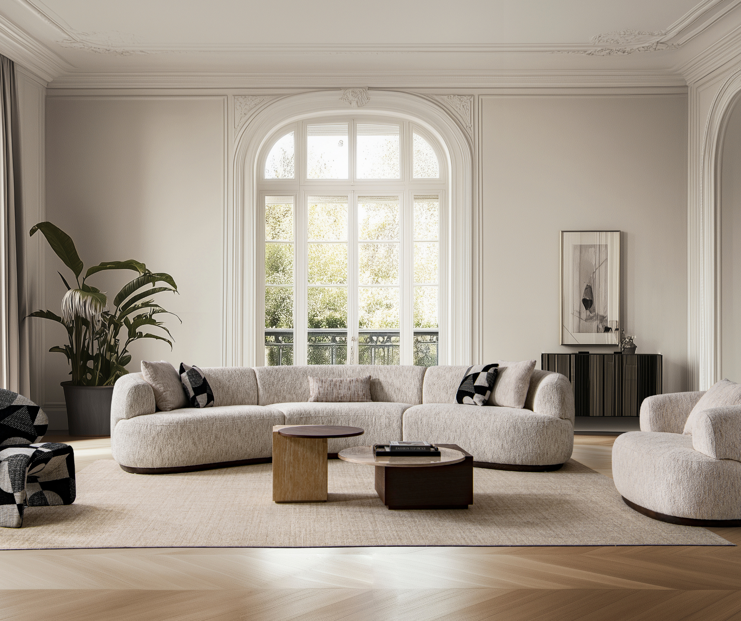The Drift Sofa is designed for spaces that flow. Its sweeping, sculptural form creates a soft sense of movement, while the low back and generous cushioning offer laid-back comfort with refined appeal. Upholstered in a textured, natural-toned fabric and grounded by a dark timber base, Drift is equal parts statement and sanctuary—perfect for open-plan living or creating calm in the corner of a room.