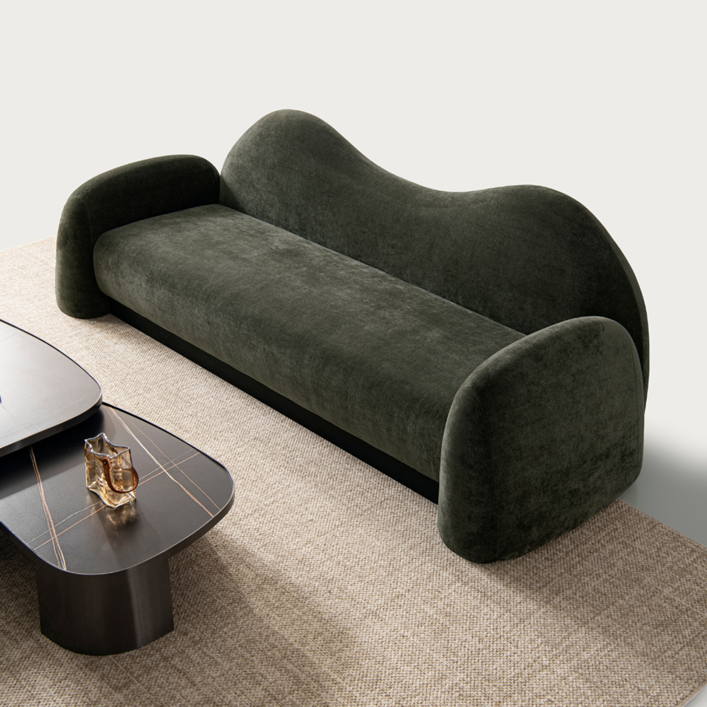 The Flow Sofa brings soft form and effortless presence. Defined by its gently curved back, this piece encourages a sense of openness and movement in a room. Upholstered in a textured fabric and grounded by subtle detailing, Flow is equally suited to relaxed lounging or refined living spaces.
