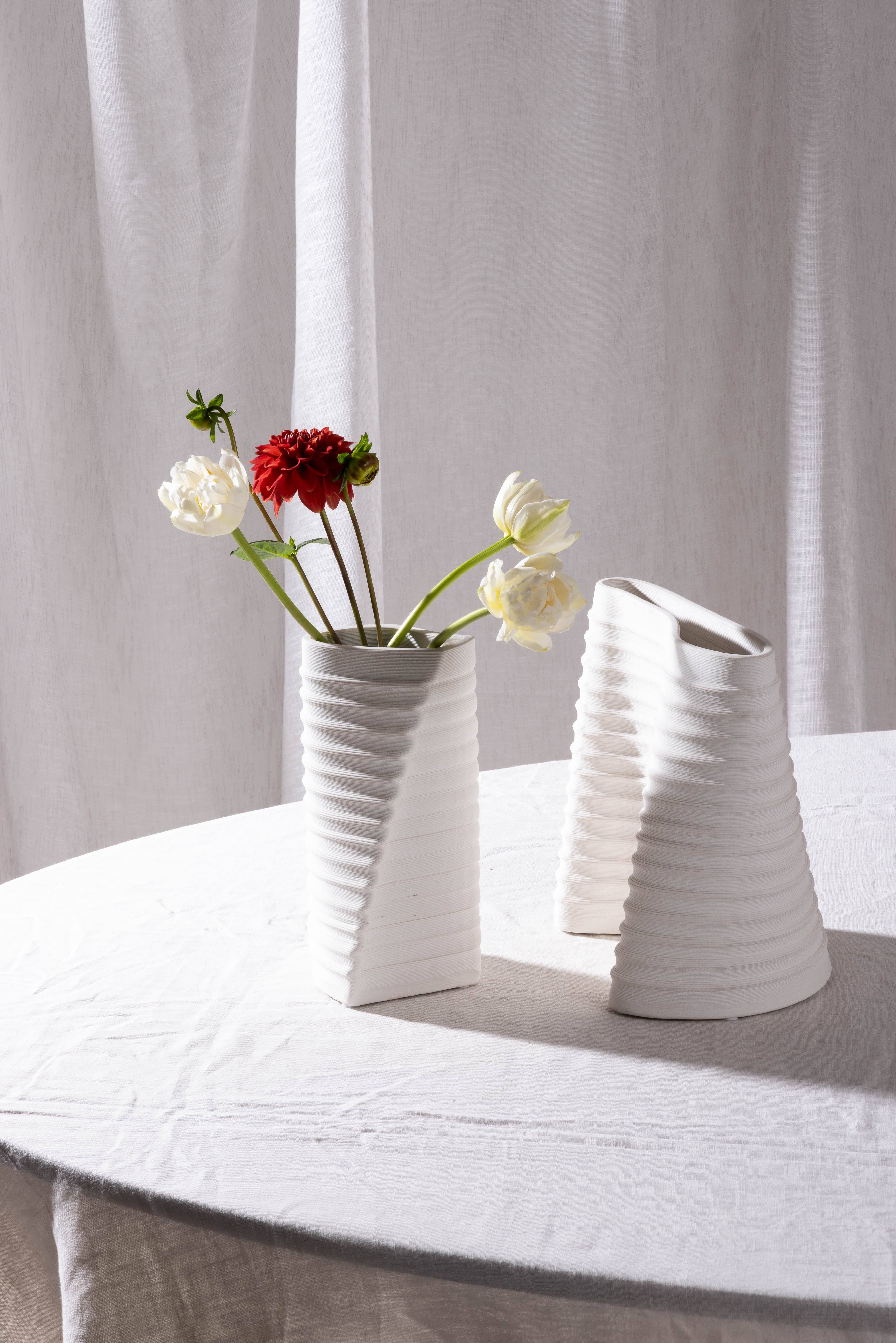 Matte White finish in elegant twisted forms. Perfect for a modern statement piece or for your living floral display.