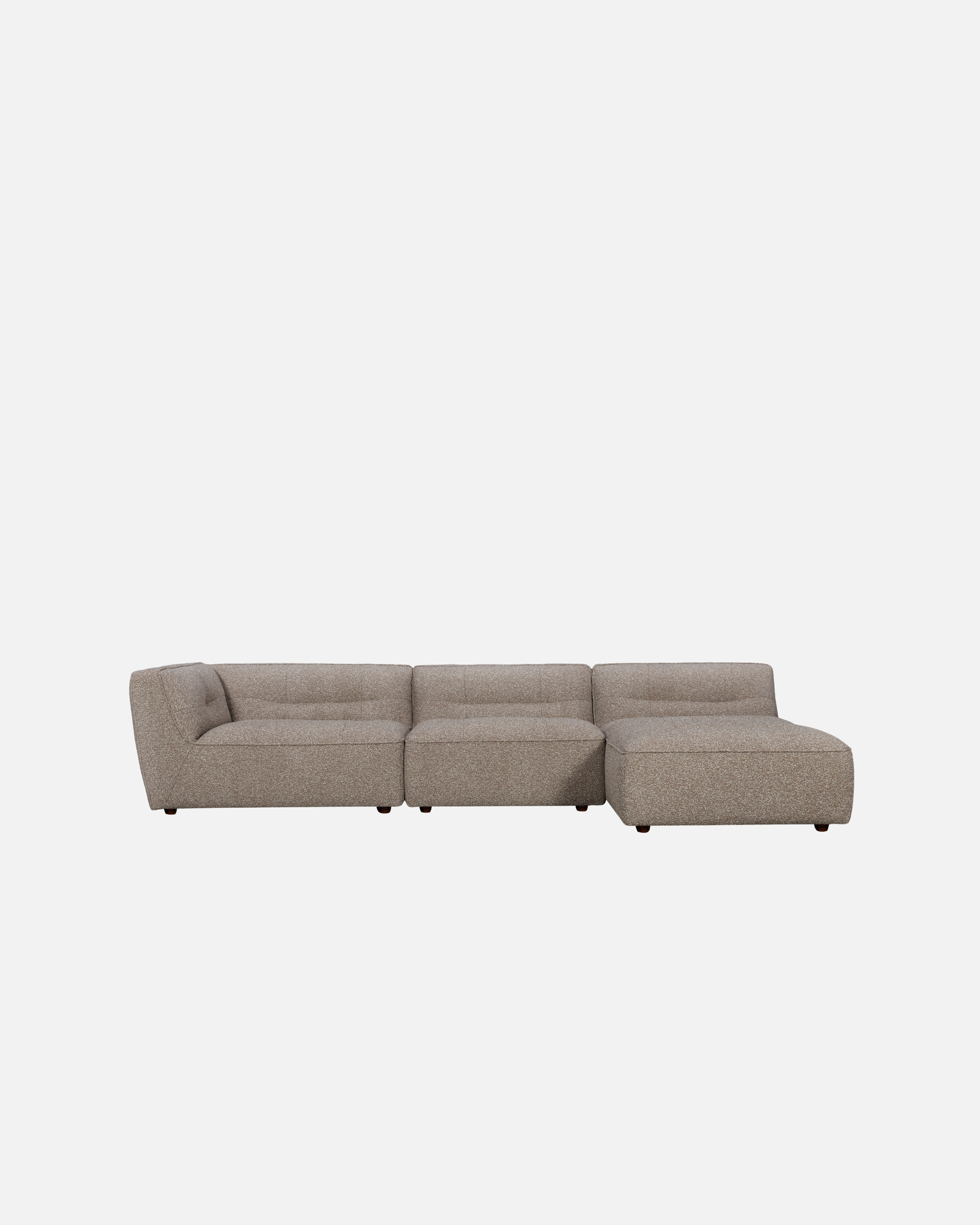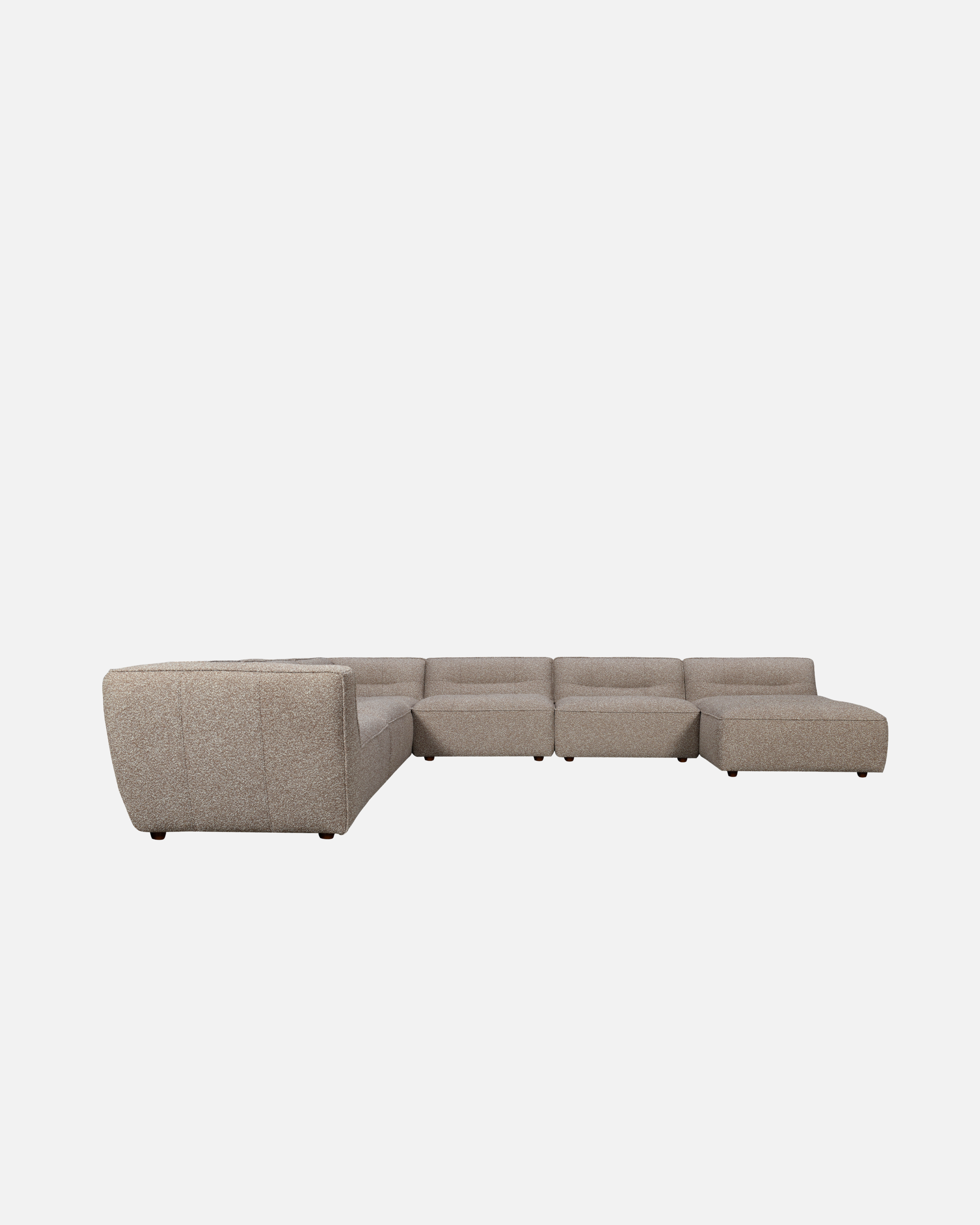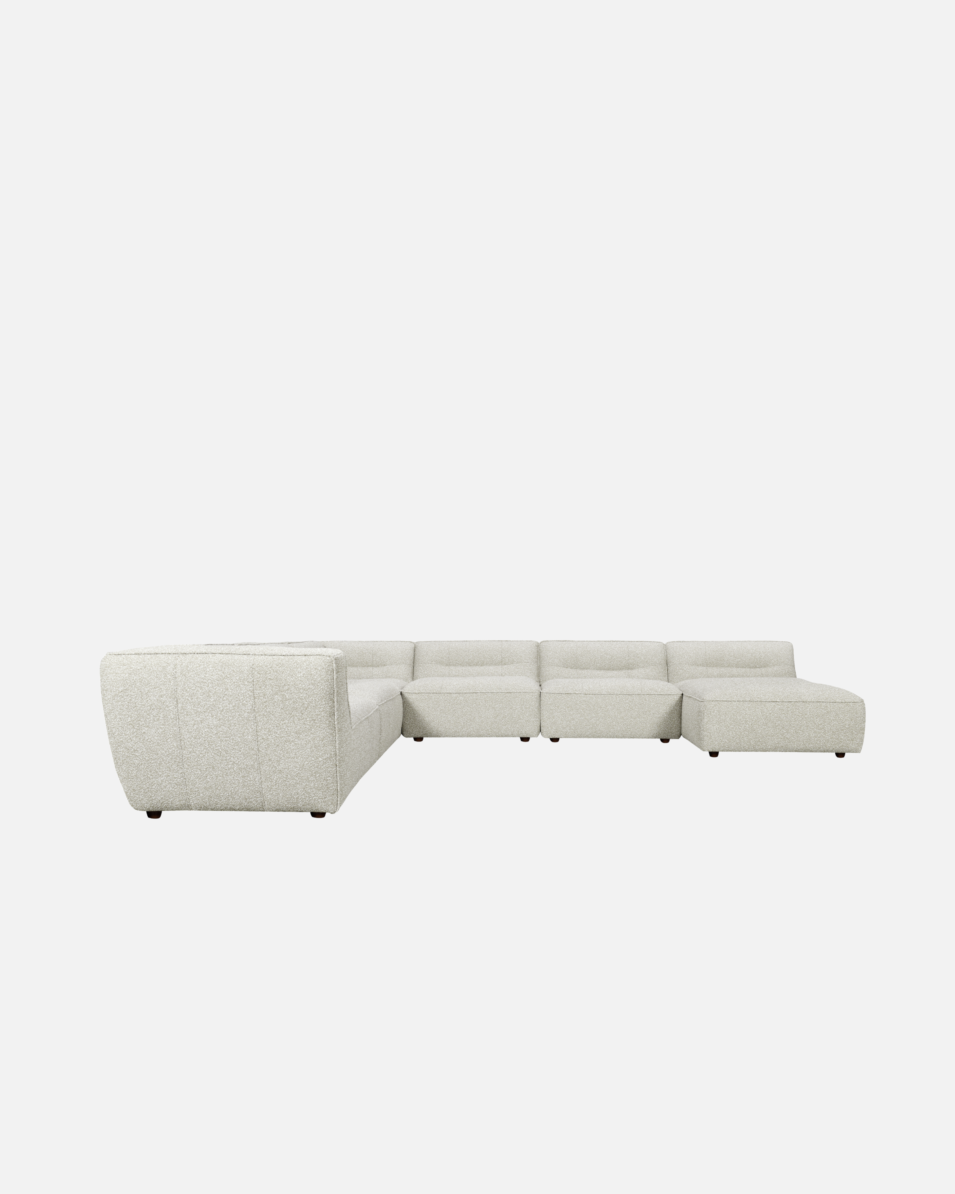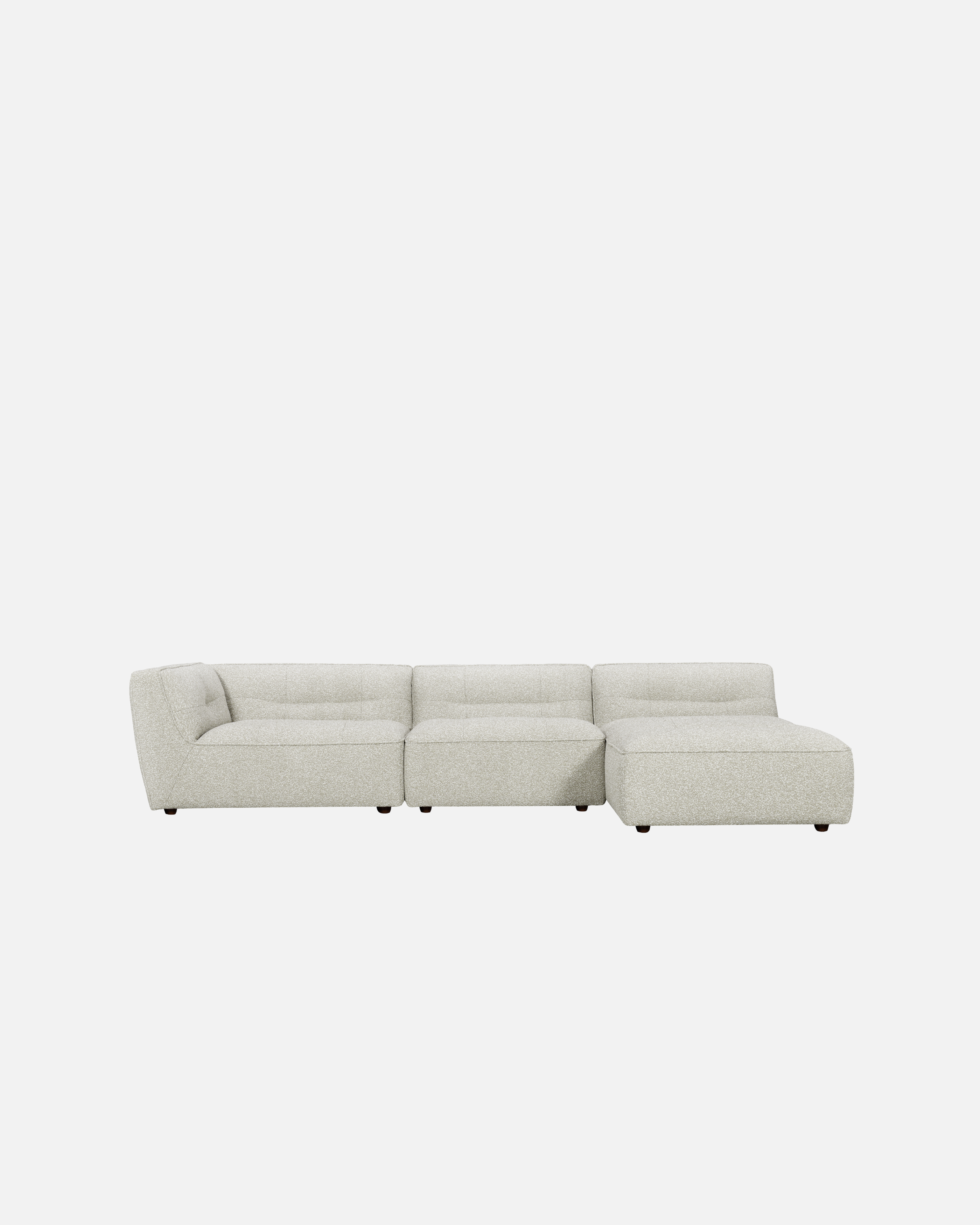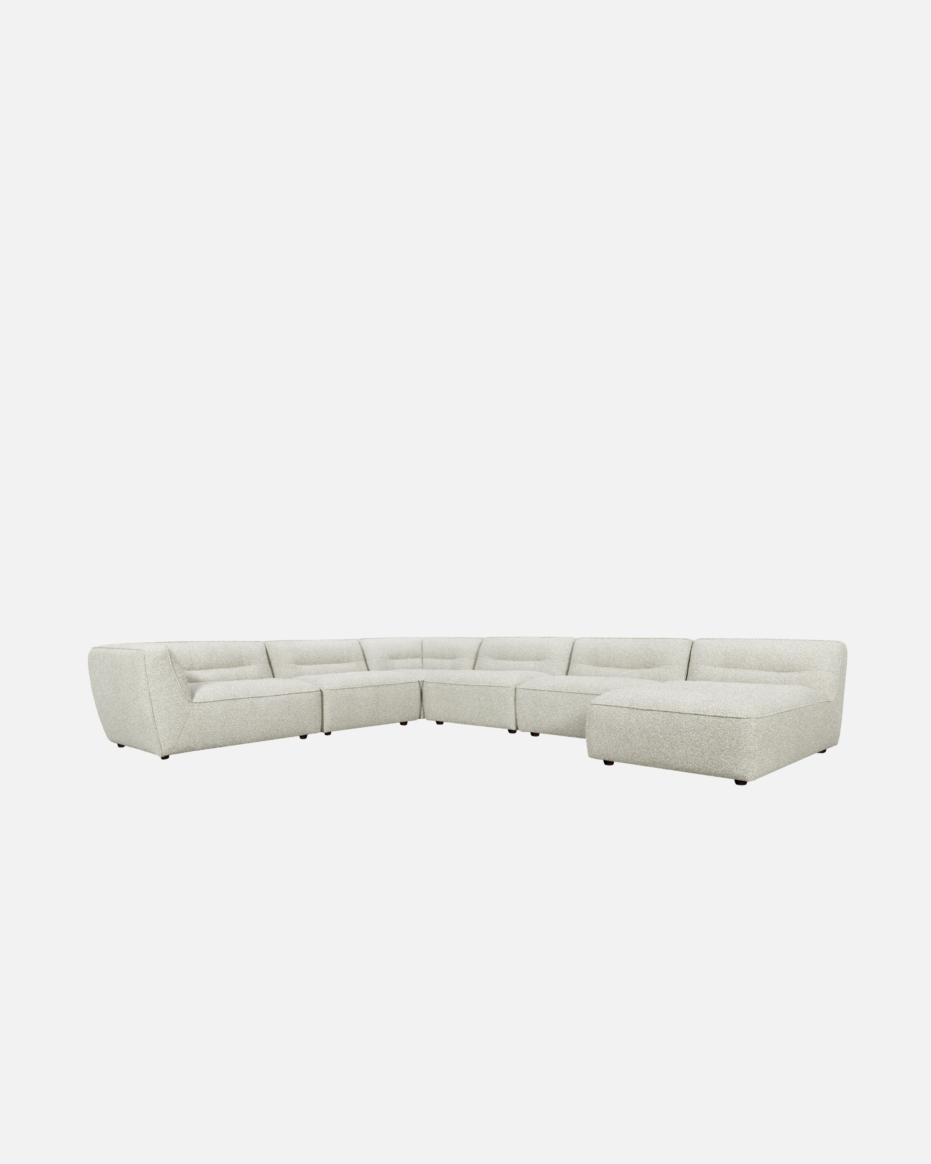 Upholstered in a tight bouclé fabric, Grace has a soft, tactile feel while maintaining structure and durability for everyday living. Its generous proportions and low, grounded profile create a relaxed silhouette that invites you to settle in, stretch out, and stay a while.