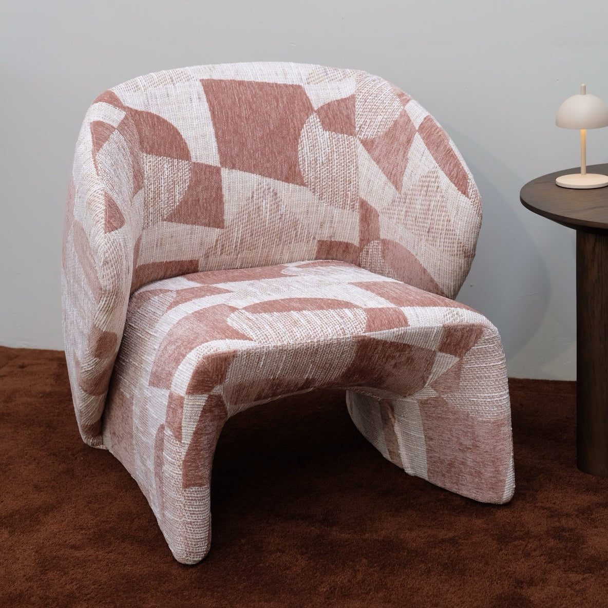 Sculptural and striking, the Halo Chair blurs the line between furniture and art. Its bold, curved form wraps around the body, offering both comfort and statement. Upholstered in a graphic woven textile, the chair adds rhythm and texture to any space — whether styled solo or as a pair.