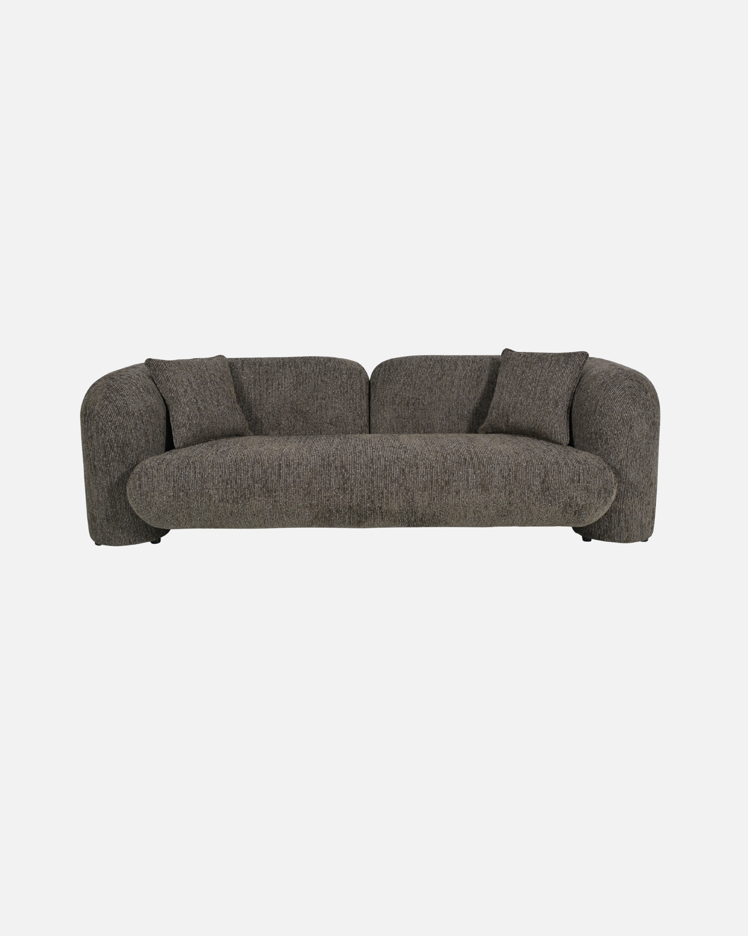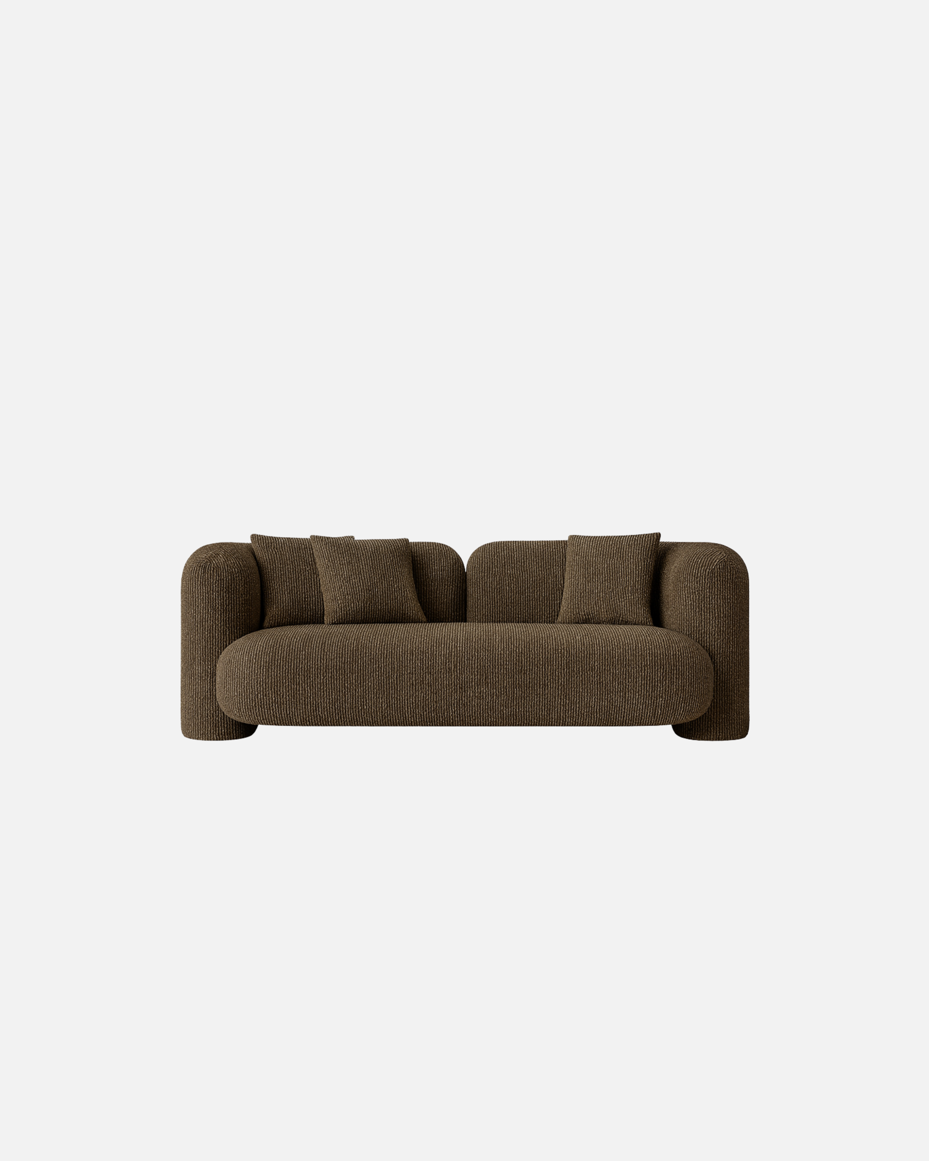 The Hendrix Sofa brings sculptural curves and generous comfort together in one statement piece. Upholstered in a textured cream fabric with subtle flecks woven throughout, it offers both depth and durability while keeping a soft, inviting feel. Its rounded arms and low-profile silhouette create a modern yet timeless presence, perfect for anchoring a living space. Plush cushioning and matching throw pillows ensure relaxed seating without compromising on design. Crafted for everyday living, the Hendrix Sofa balances elegance with practicality — making it as comfortable as it is visually striking. Arriving January