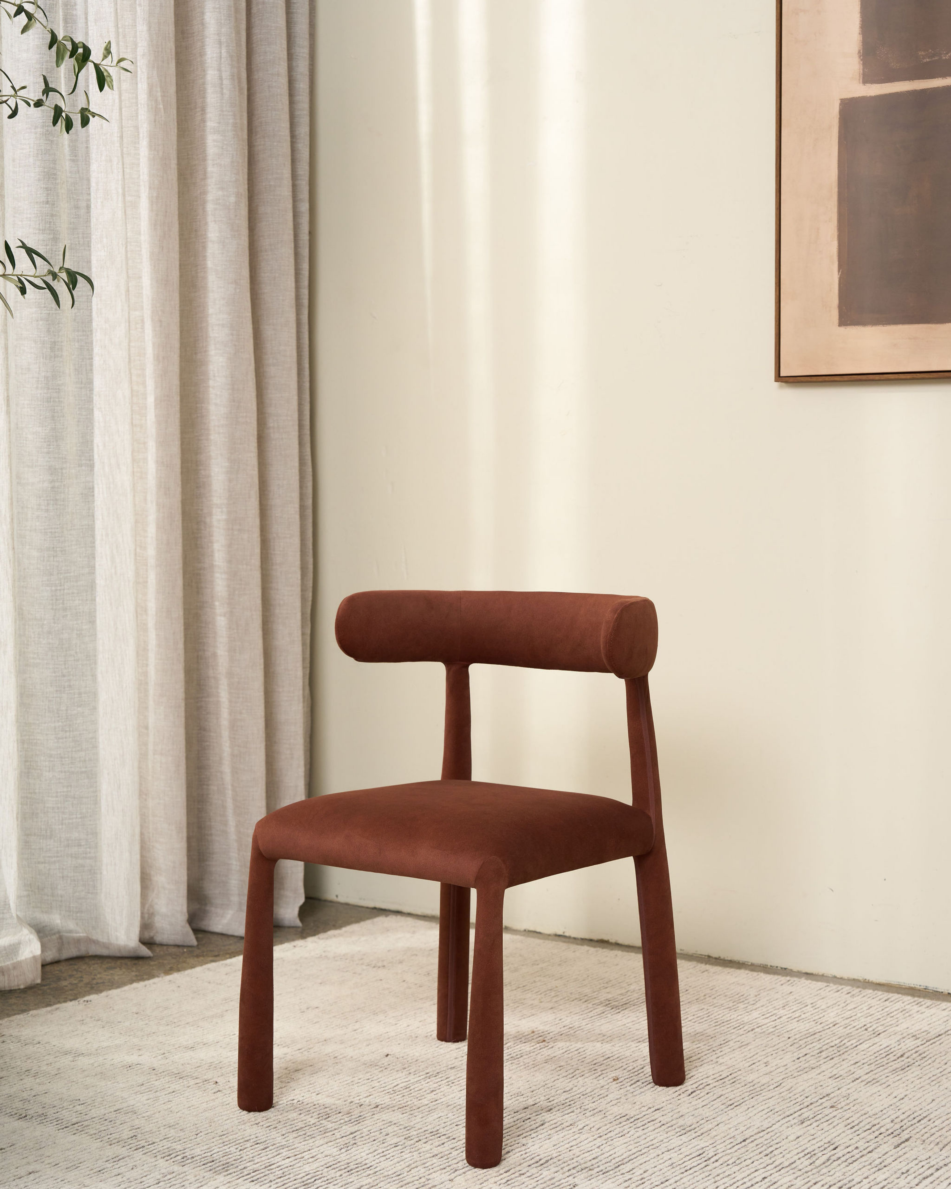 The Lou Dining Chair combines sleek design with effortless comfort. Featuring a warm, rich mocha finish and a gently curved backrest, it adds a touch of modern elegance to your dining space. With a durable steel frame and soft upholstery, it’s the perfect blend of style and function.