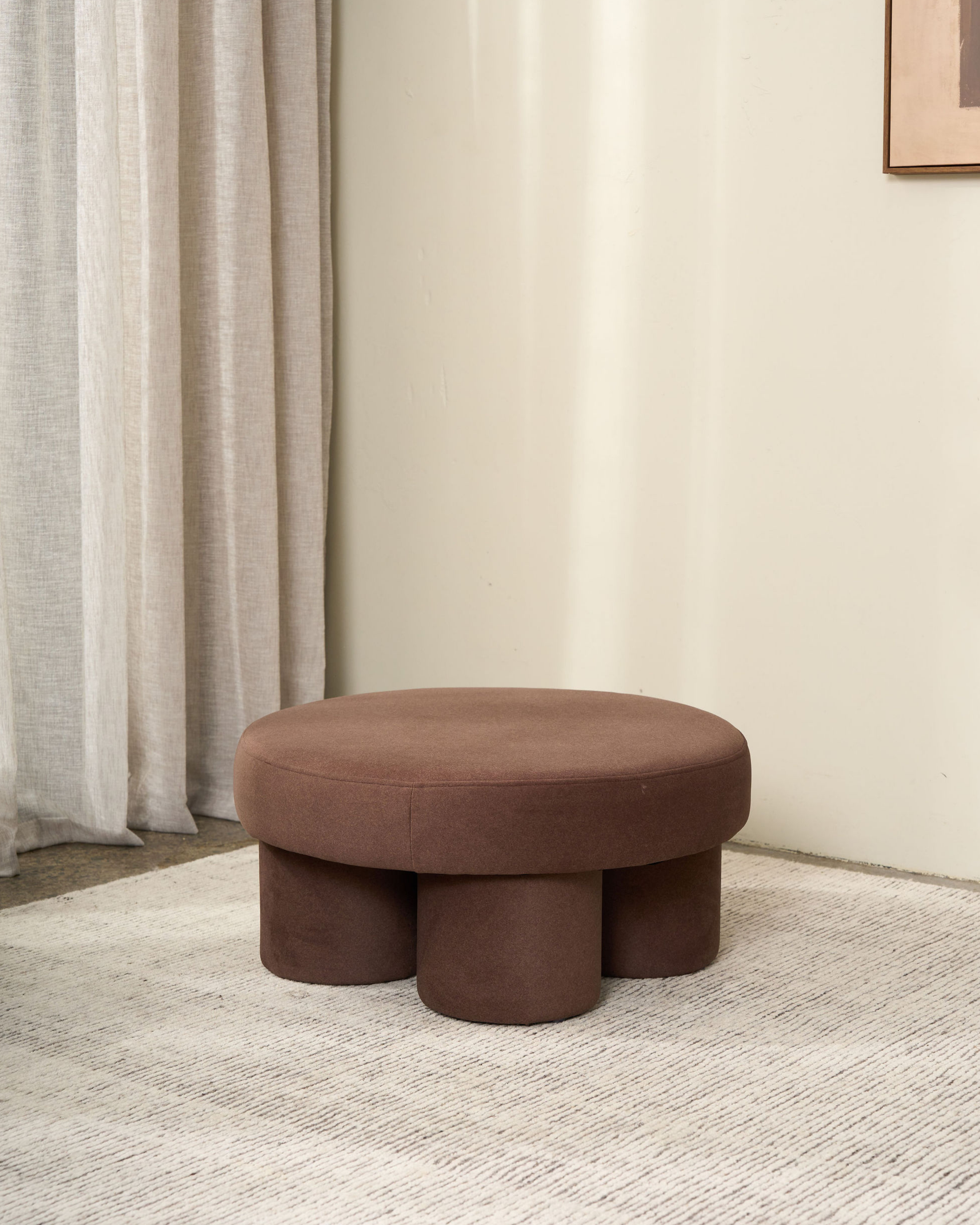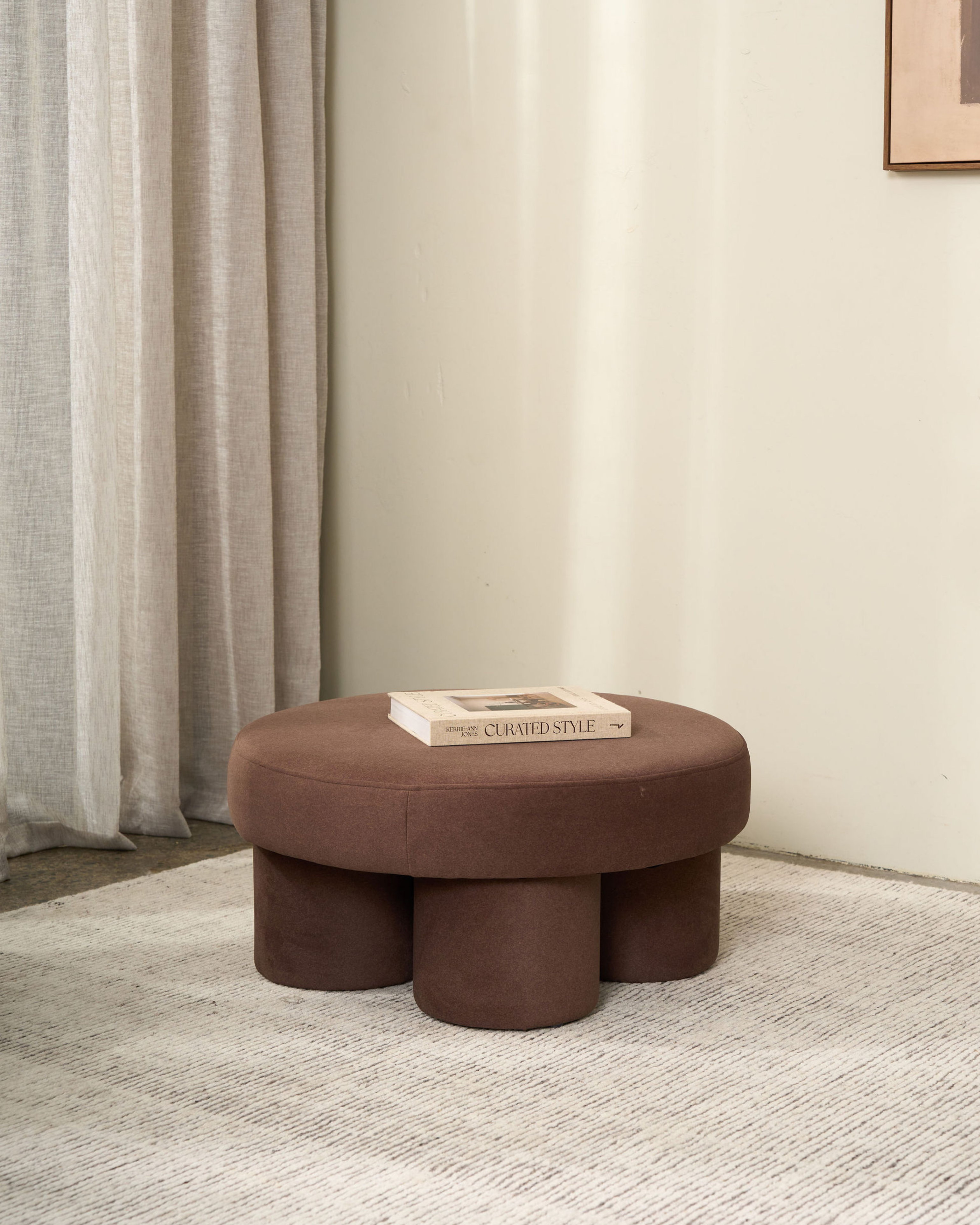 The Lume Ottoman is a sculptural statement piece defined by its bold, rounded form. Upholstered in a rich caramel & chocolate velvet, it brings warmth and depth to any interior. Its playful silhouette, balanced by clean lines and a soft touch, makes it equally suited as a footrest, side table, or a stand-alone accent.