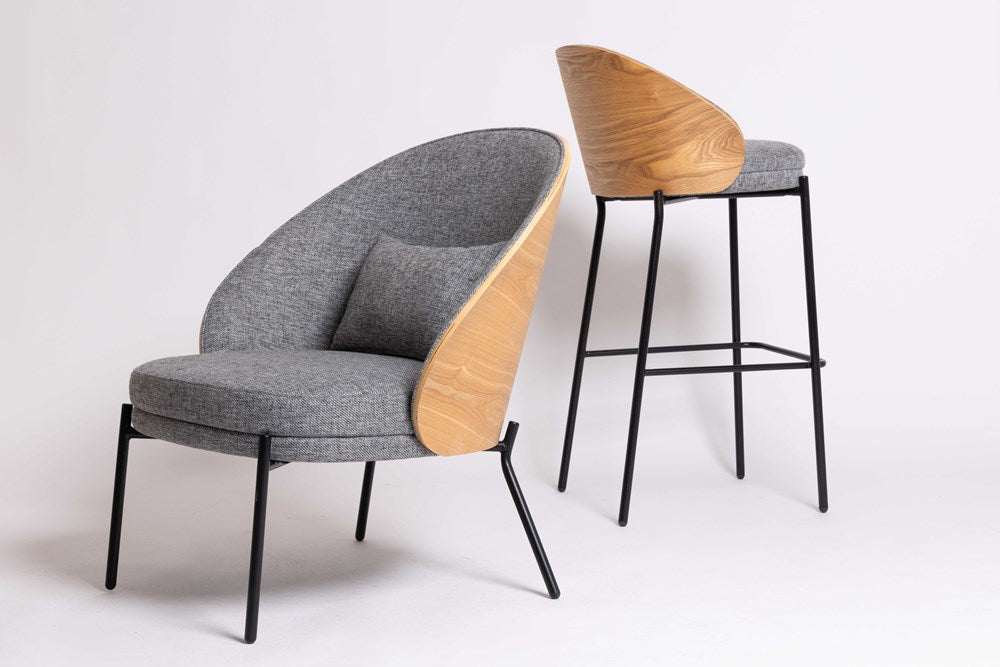 Experience elegant comfort with the Mia Occasional Chair. This fabric chair features a unique curved back for added support, while the beech wood backing and powder coated steel legs offer durability and a sleek modern look. Perfect for any space, add a touch of style and luxury to your home with the Mia Occasional Chair