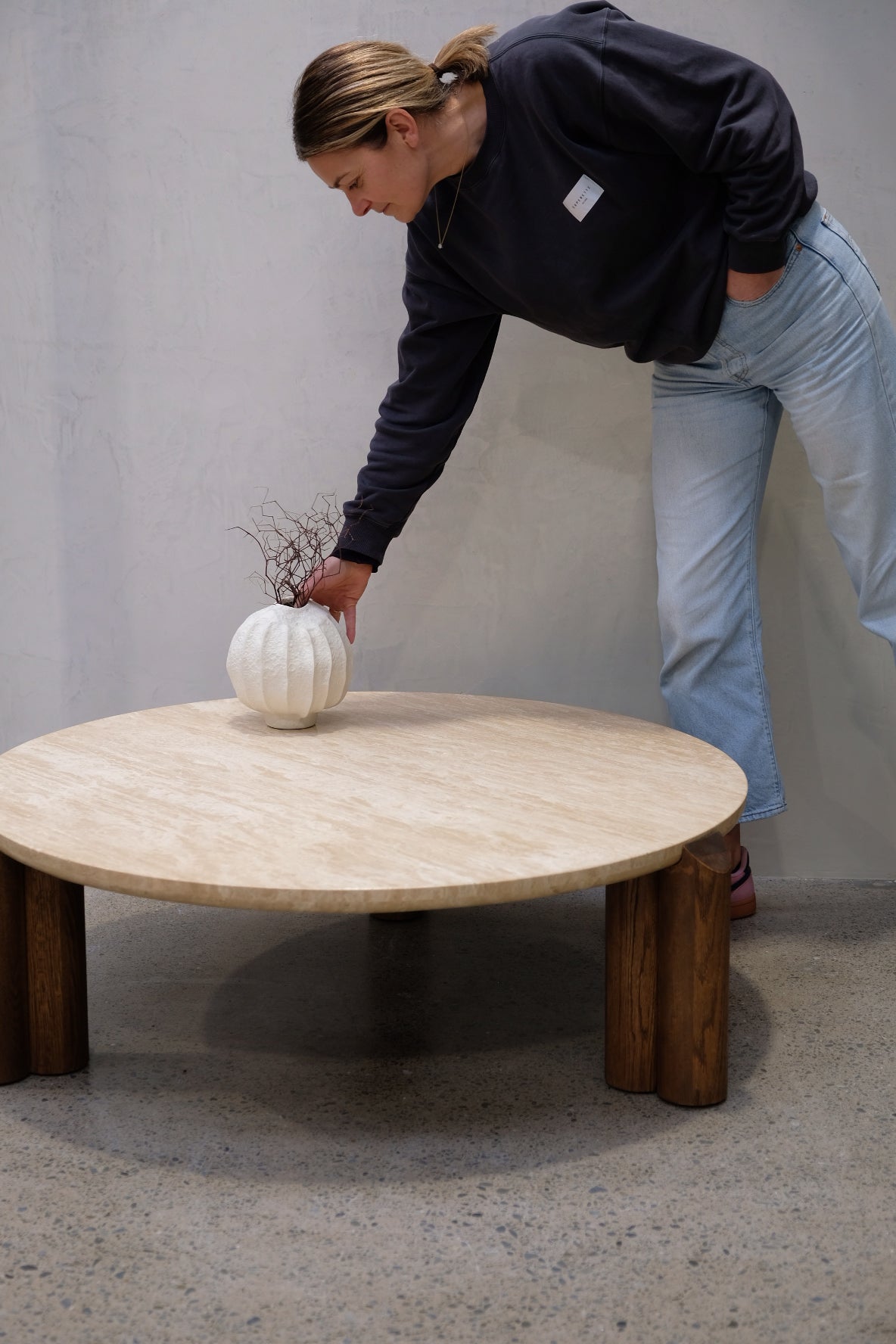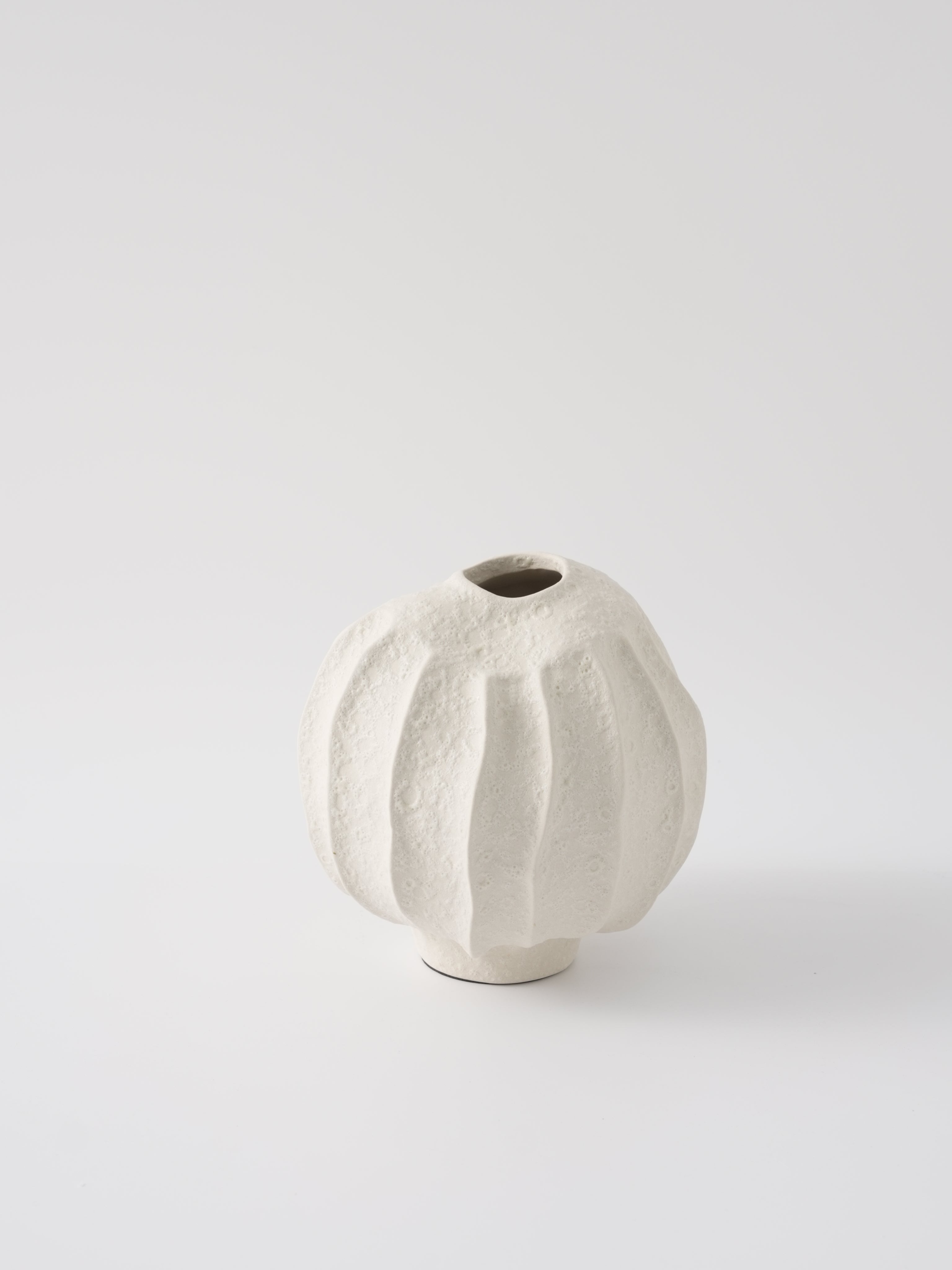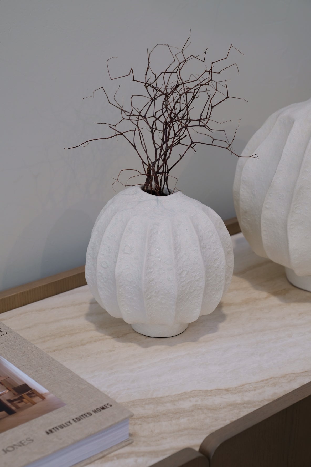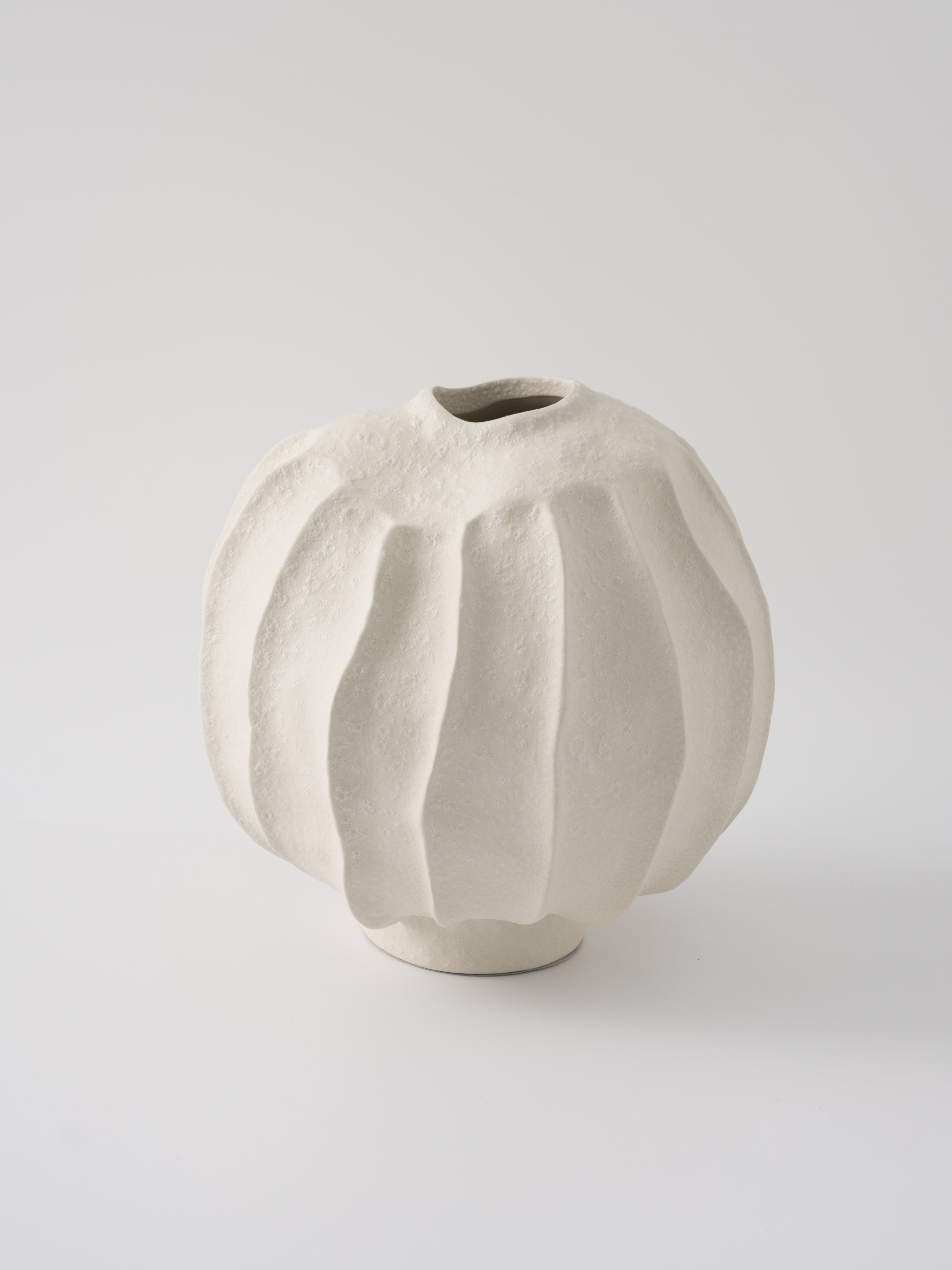 The Muri Vase features soft, sculptural curves and a textural surface that adds natural character. Handcrafted with a matte off-white finish, these vases make a beautiful statement on their own or styled together.