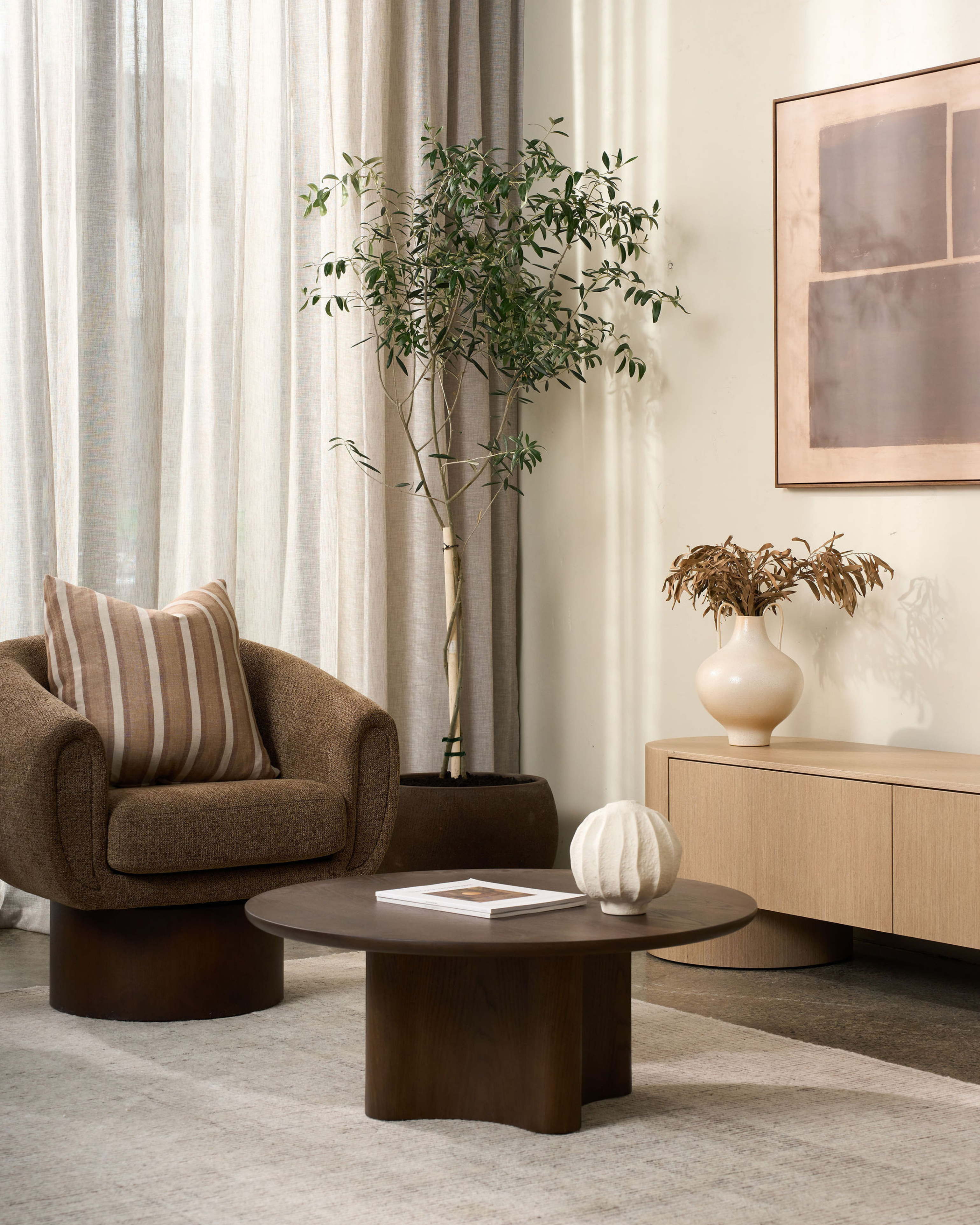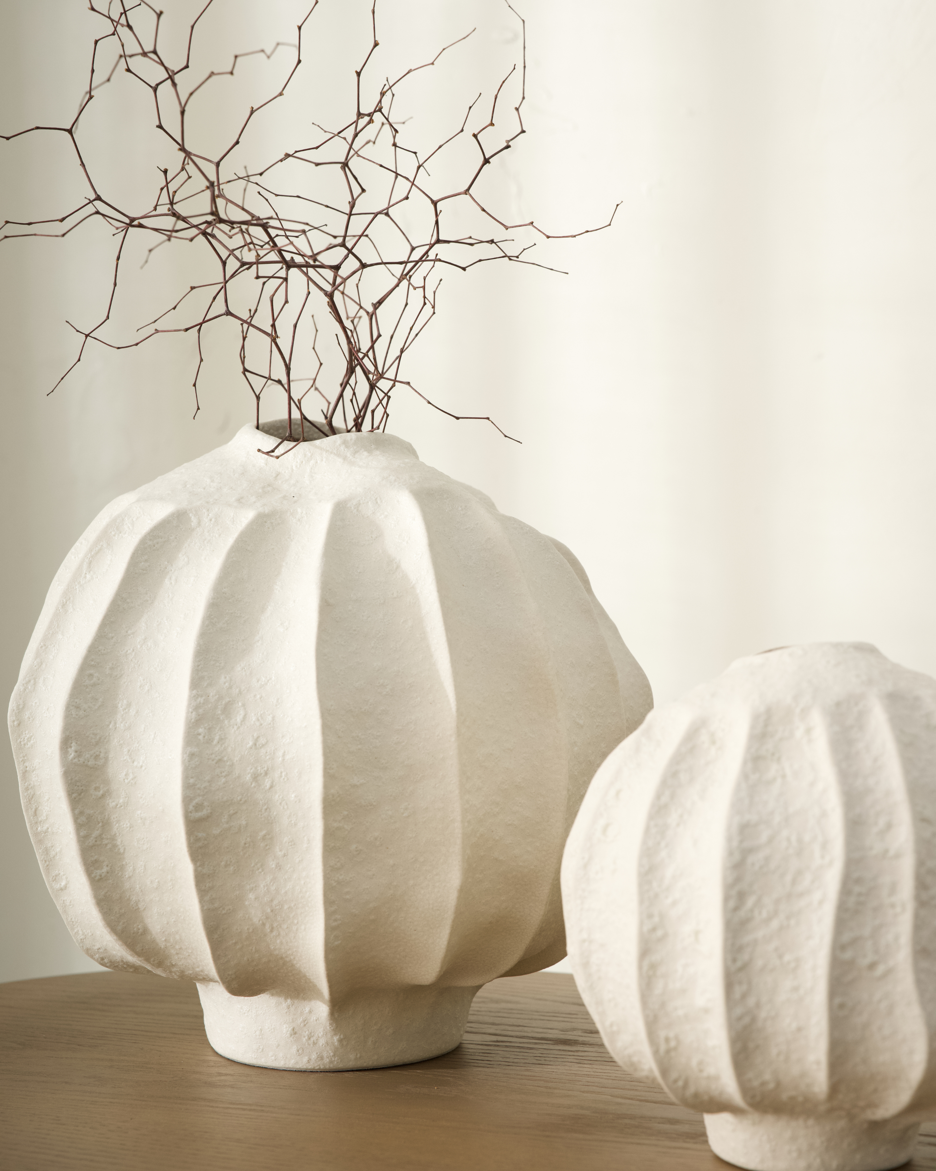 The Muri Vase features soft, sculptural curves and a textural surface that adds natural character.