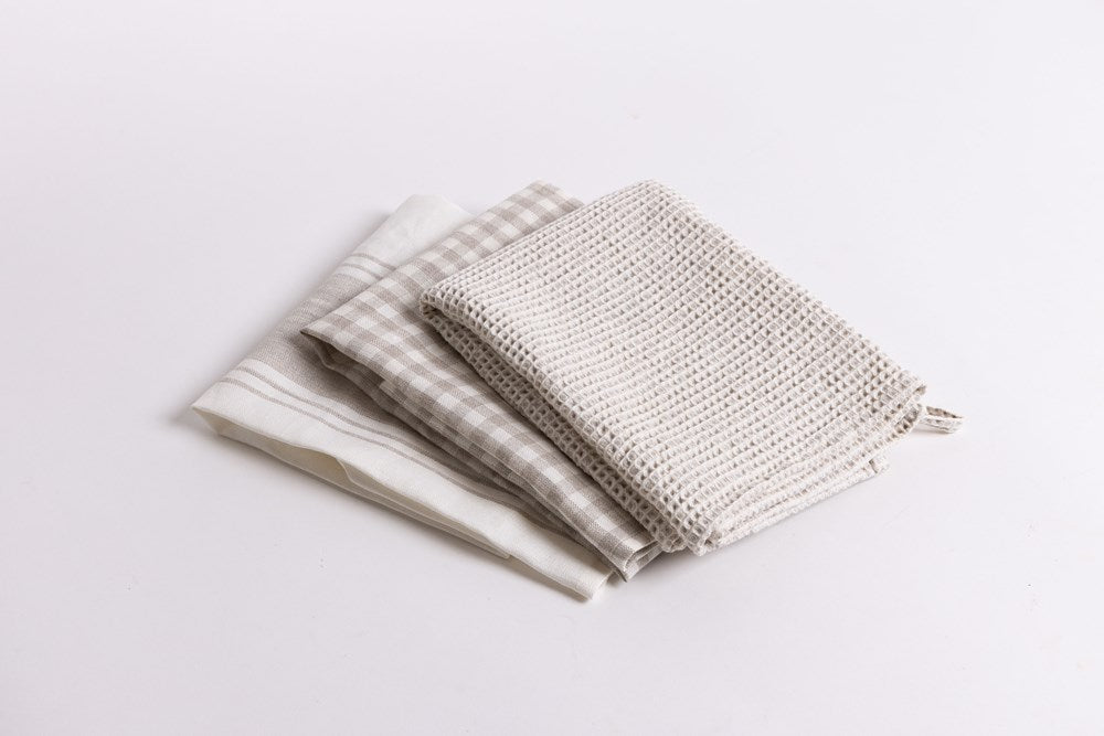 Bringing a calming palette to your kitchen. This generously sized tea towel is highly absorbent, made from a 100% linen.