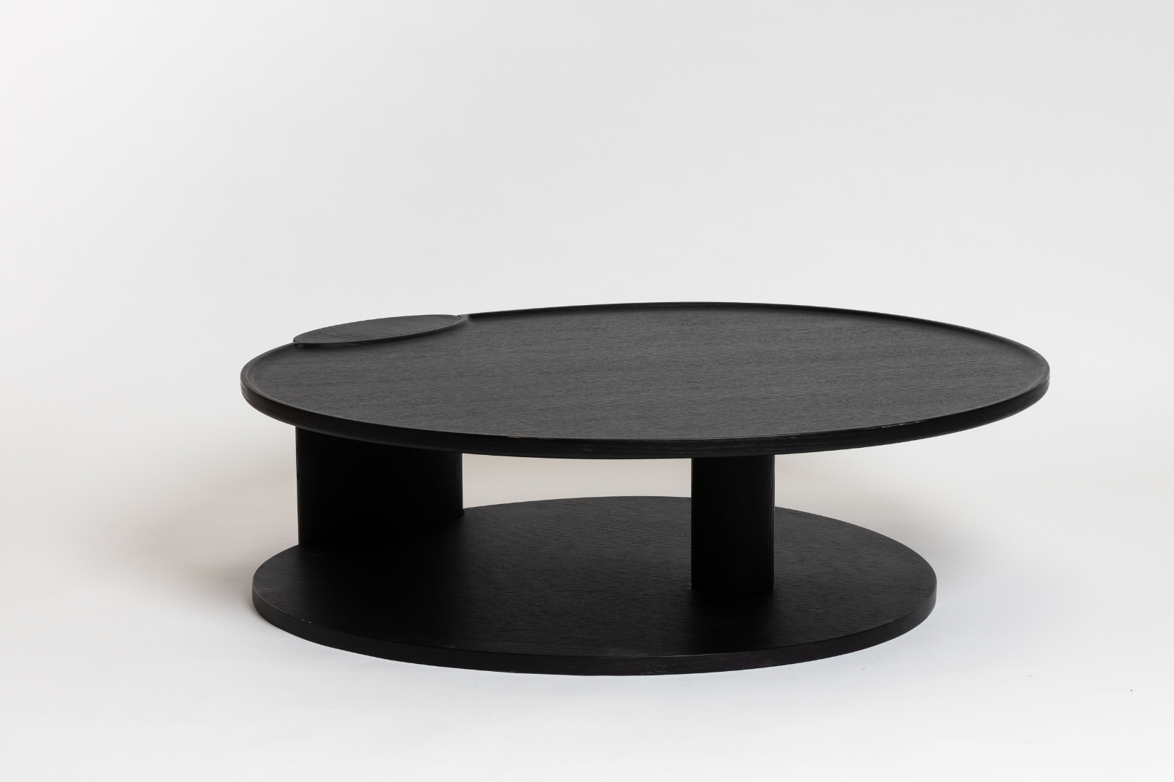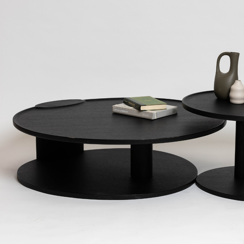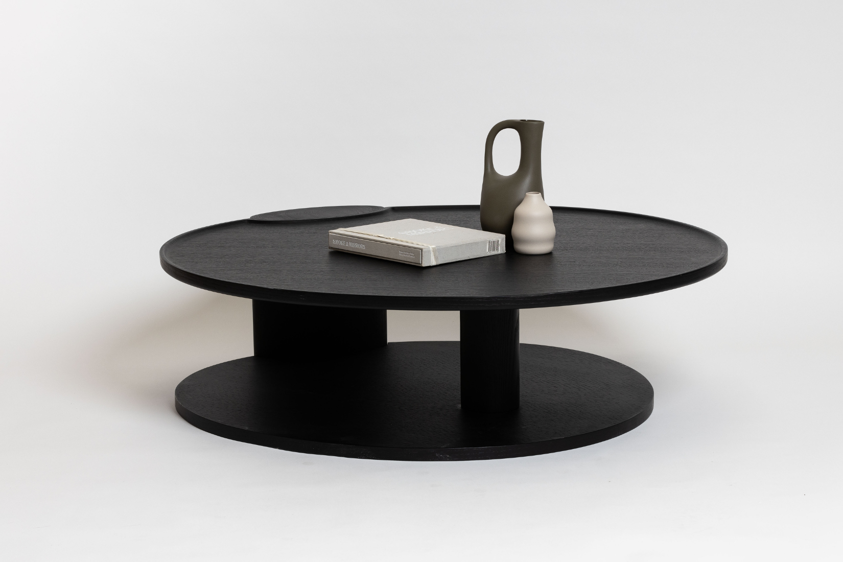 The Oki Coffee Table is a sturdy yet sculptural piece. Playing with multiple shapes, the oval top rests lightly upon two geometric legs that are anchored by a heavy, oval base. The table is a subtle piece of art in your home that is matched by its functionality as a coffee table.