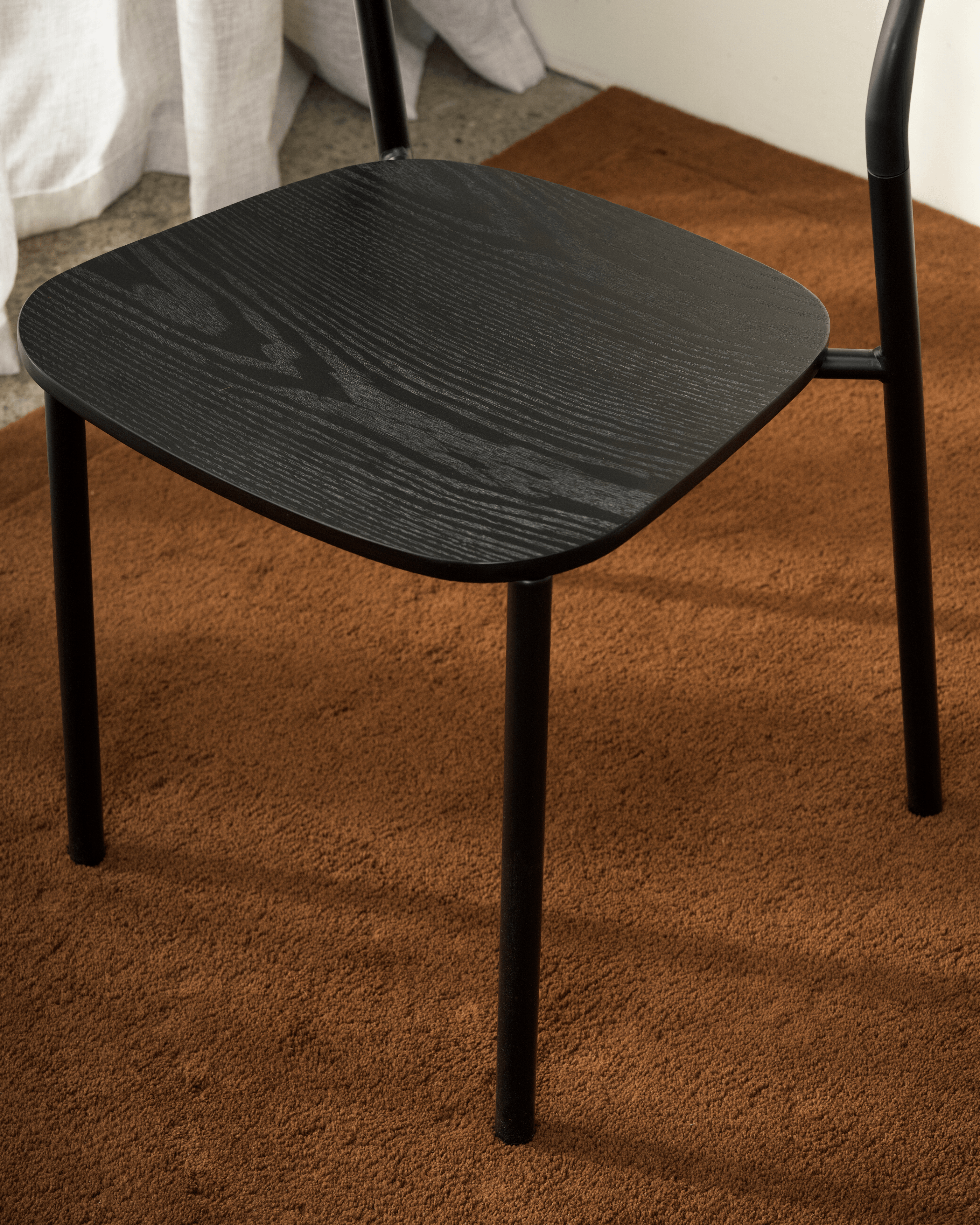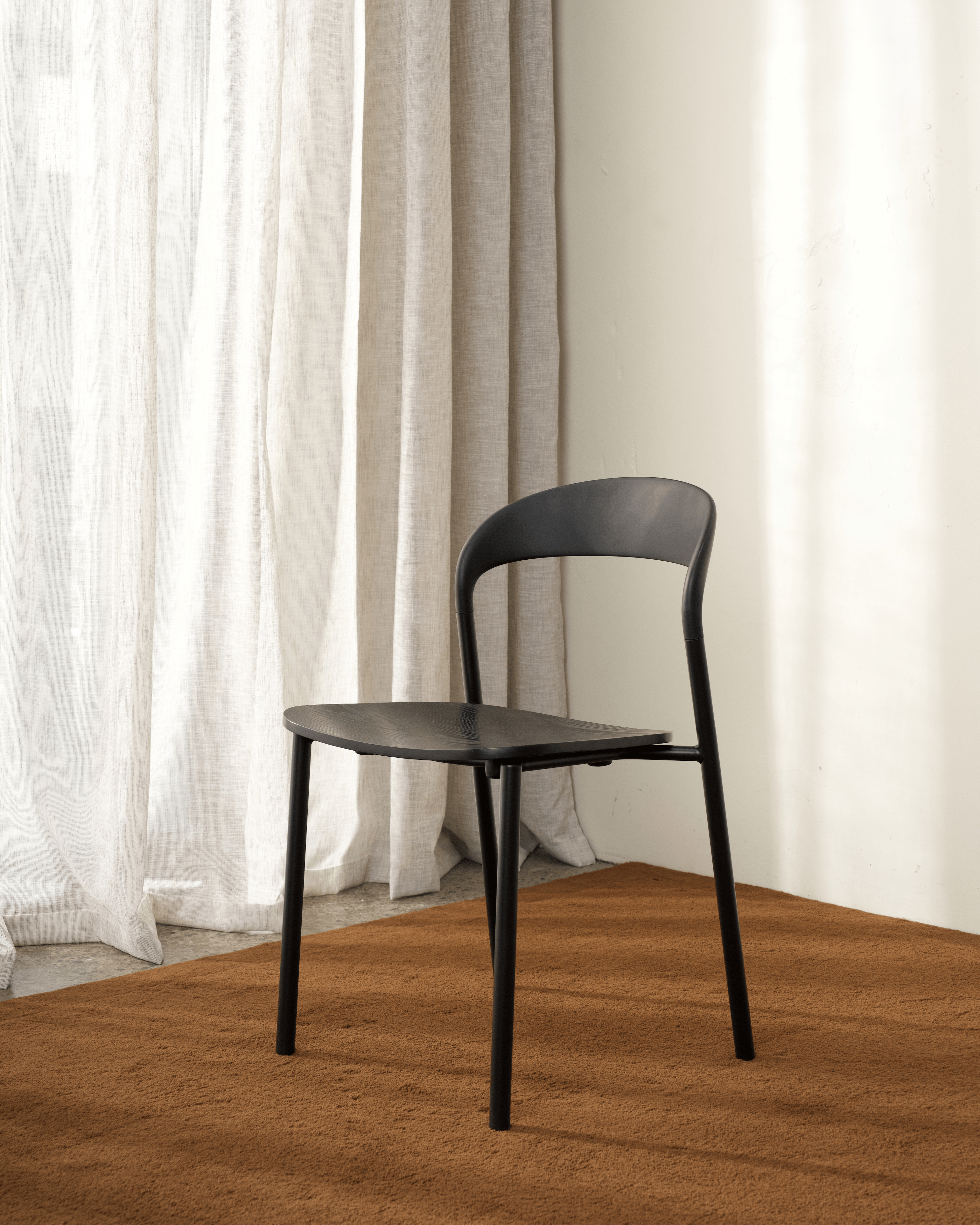 A sleek fusion of modern form and everyday function, the Olly Chair features a gently curved backrest for comfort and a contoured seat in a rich wood finish. The slim, powder-coated frame keeps the silhouette light while ensuring durability, making it a versatile choice for dining, meeting, or casual spaces. Minimal in design yet strong in presence, Olly works effortlessly in both contemporary and classic interiors.