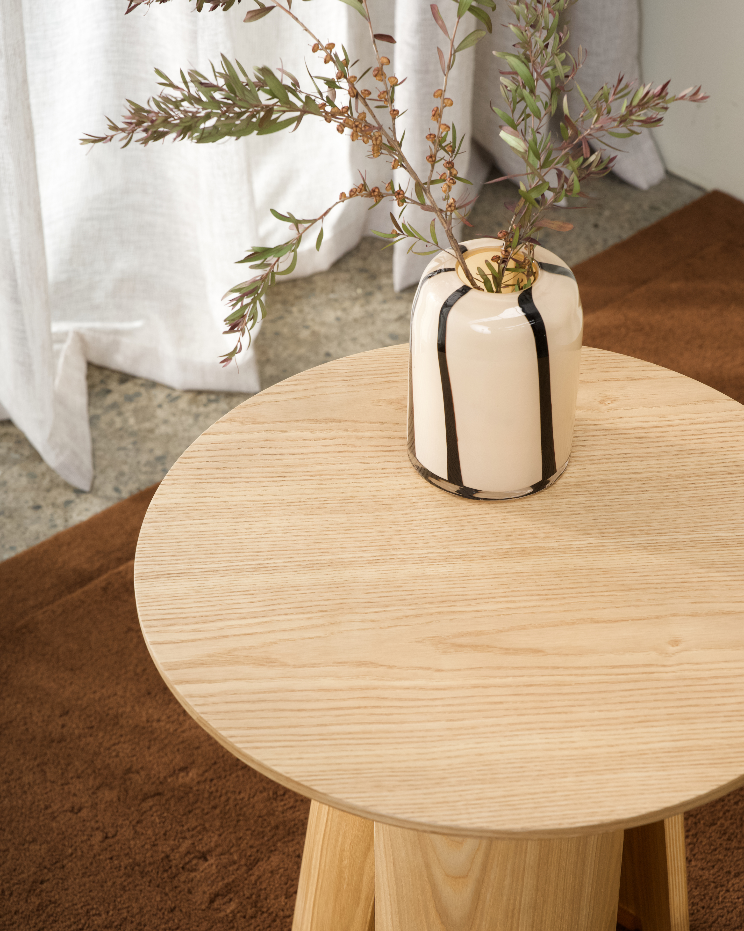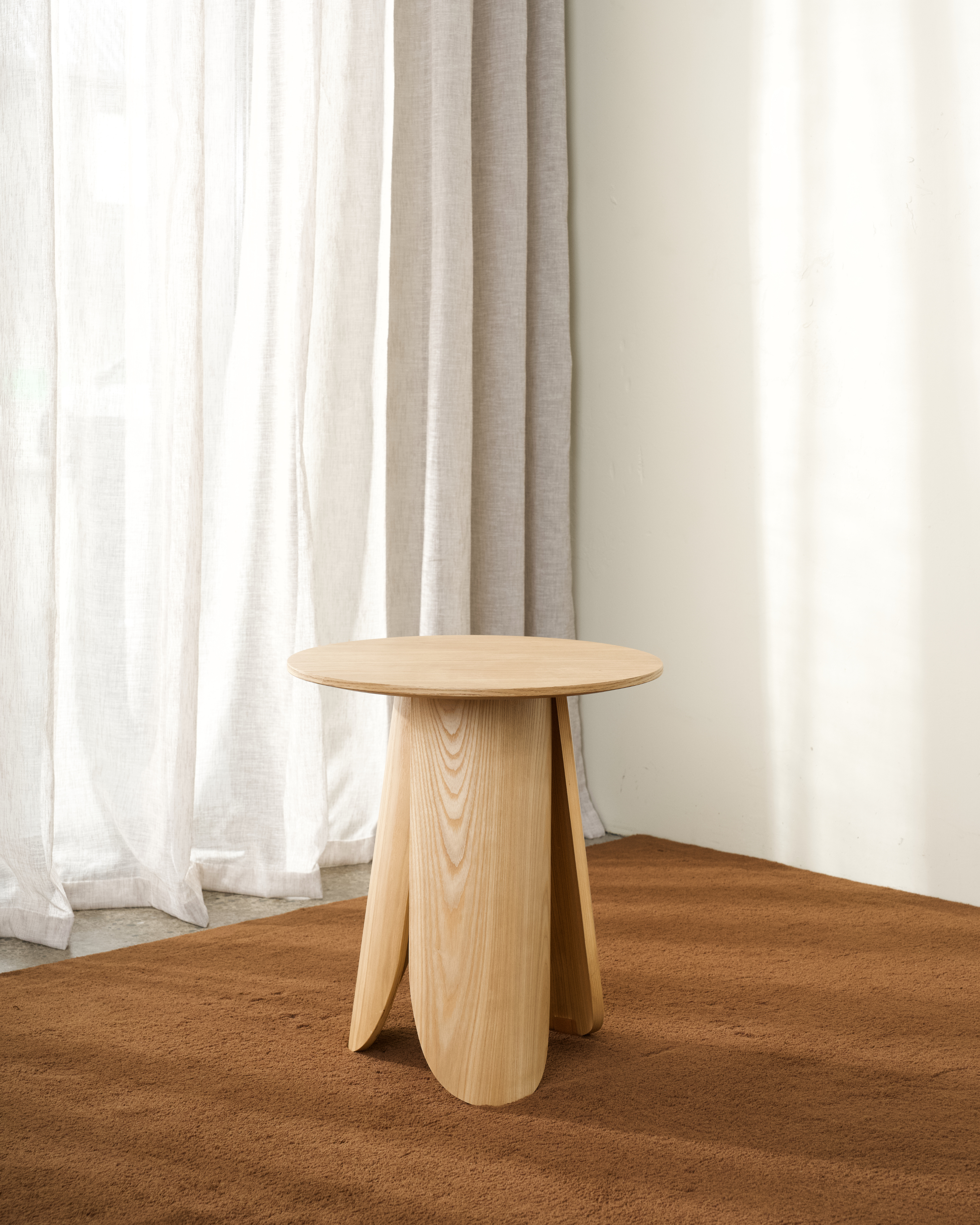 Small in scale, strong in presence. The same rounded forms and three-leg base bring a gentle rhythm beside a sofa or chair. Easy to move, easy to live with, and the perfect layer for books, a vessel or a cup. November arrival