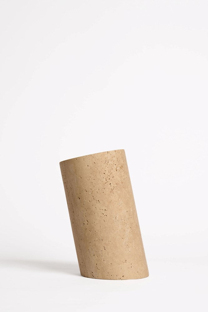 Elevate your entertaining experience with our Light Travertine Wine Cooler — a timeless piece crafted from natural stone to keep your favourite wines perfectly chilled. Hand-carved from solid travertine, each cooler showcases unique natural veining and subtle texture variations, making every piece one of a kind. The minimalist cylindrical design, set at a sleek angle, brings a modern edge to your table while the natural thermal properties of travertine help maintain your bottle's ideal temperature. This piece adds both function and sophistication to any setting. Travertine is a natural material, variations may occur