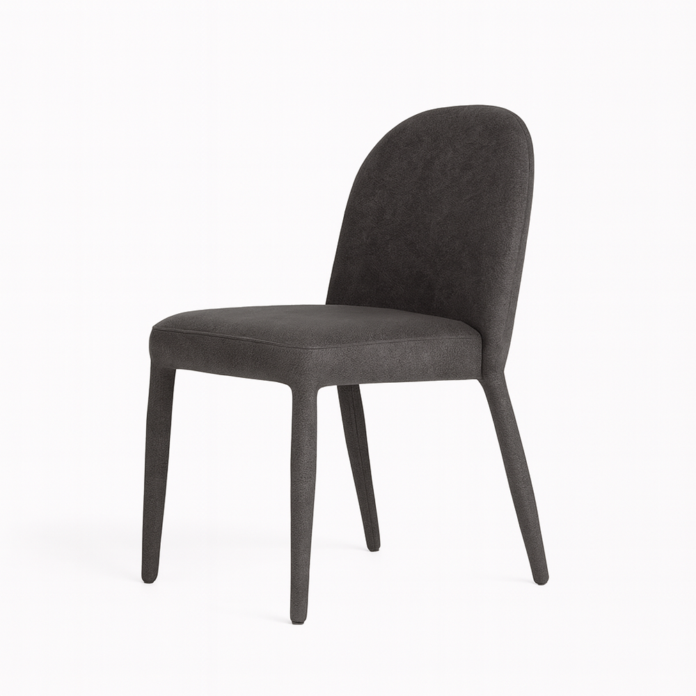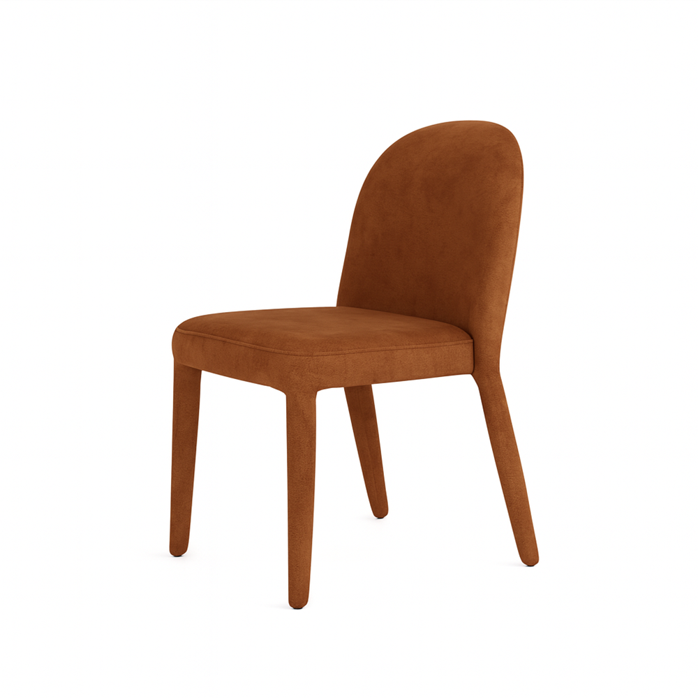 Soft curves, easy comfort. Tres pairs a rounded back with slim, upholstered legs for a gentle, quiet silhouette at the table. The fabric has a mohair like hand feel, adding warmth and subtle texture, while a strong steel frame and high density foam keep the seat supportive for long conversations. Made for dining, desk or occasional use. Easy to style with timber, stone and natural textiles. Arrival November
