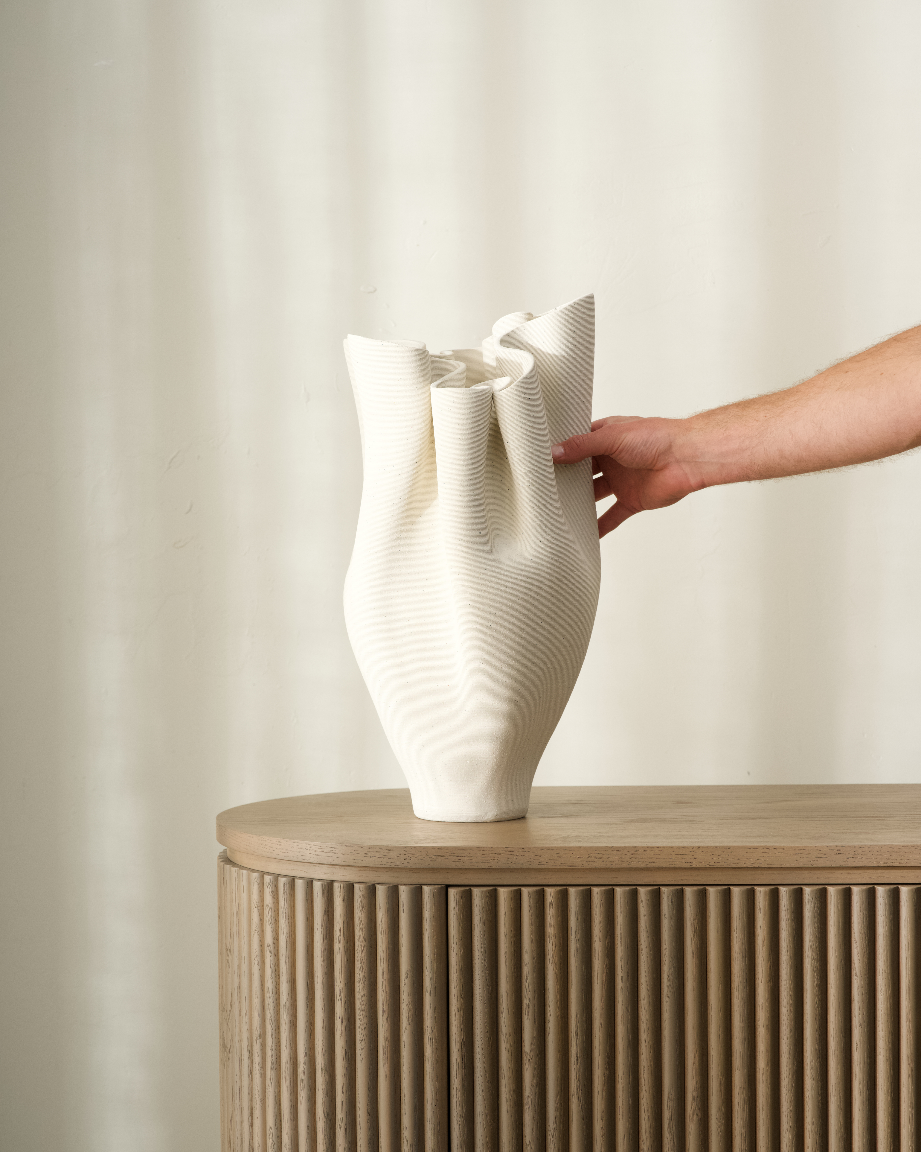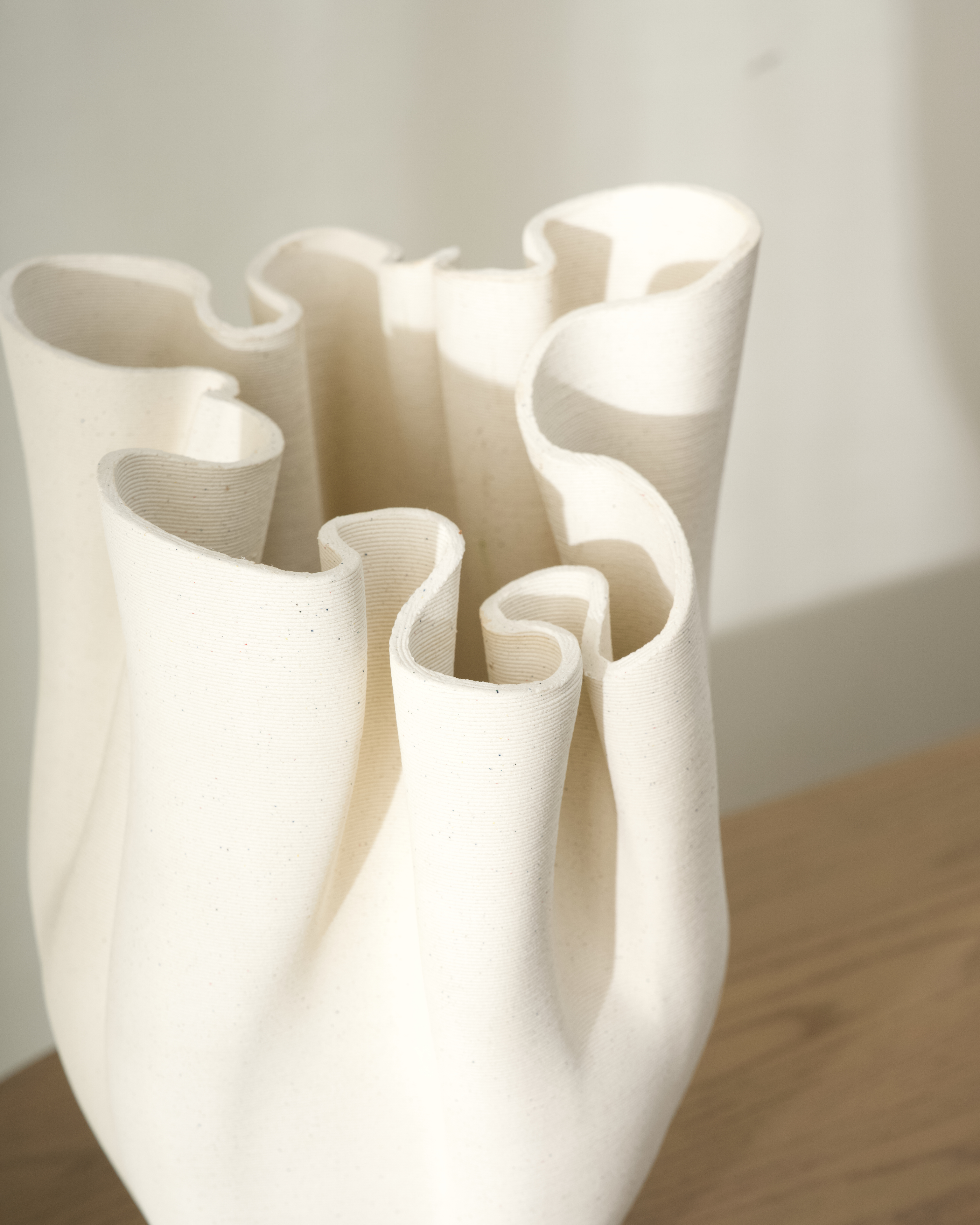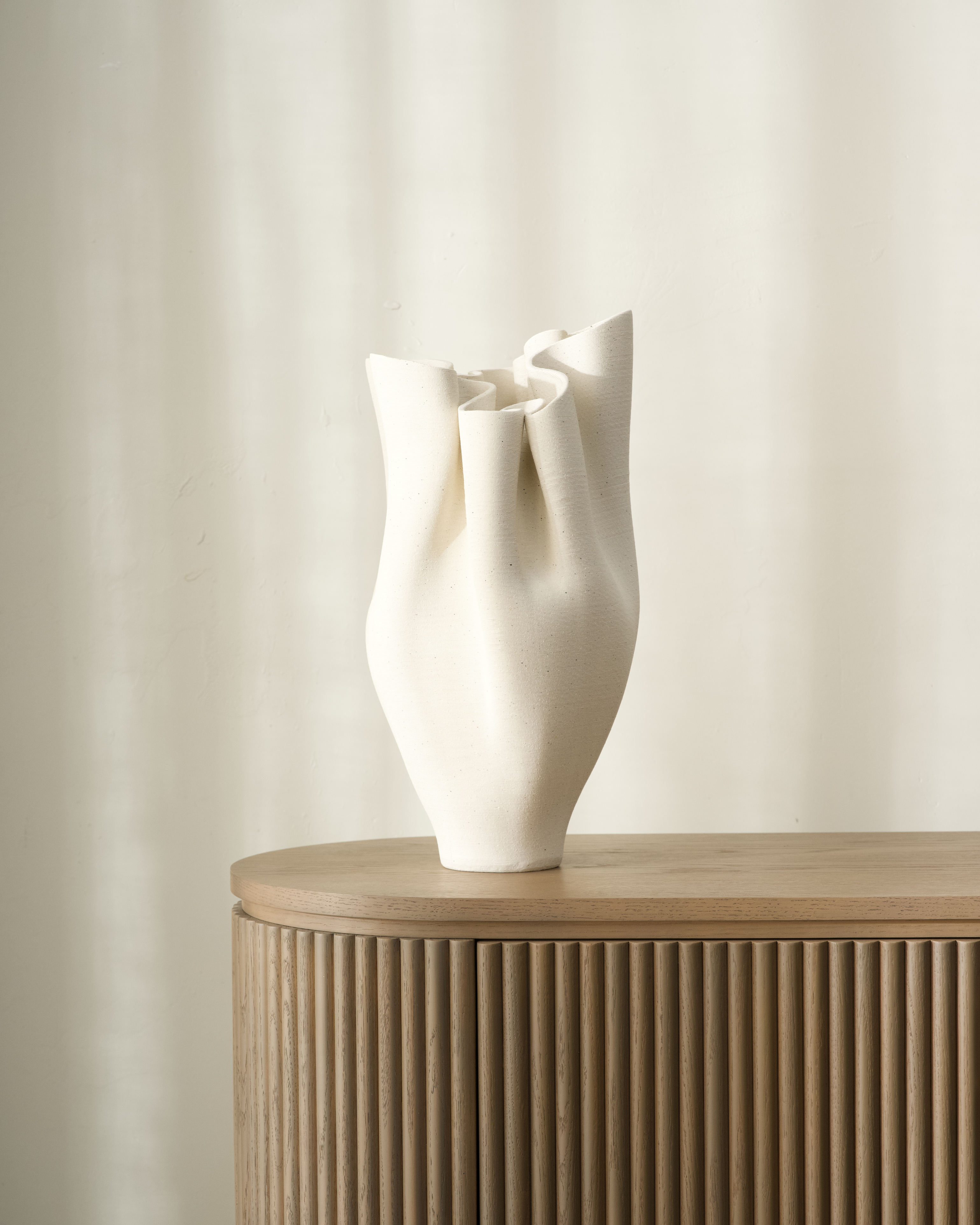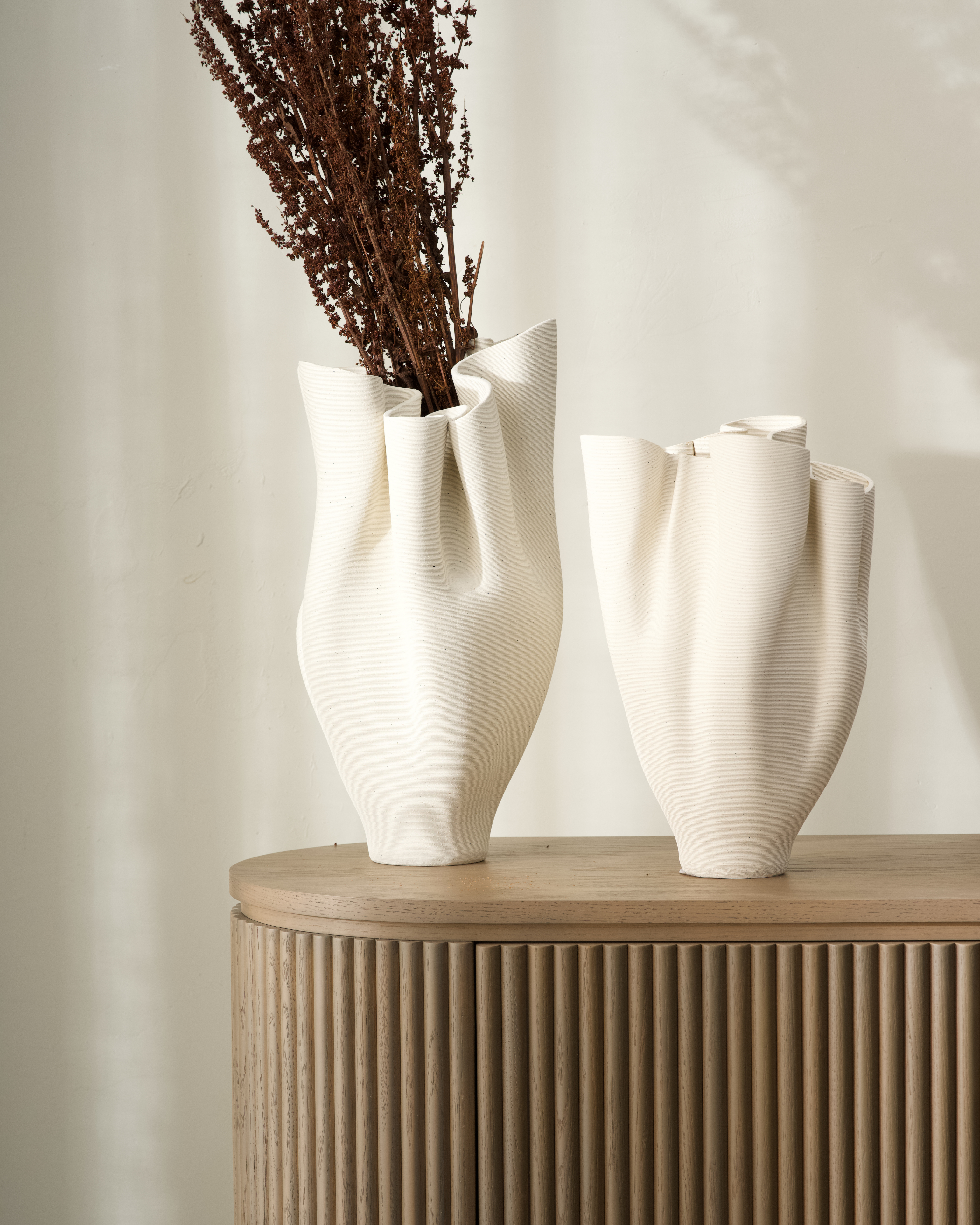 With soft, sculptural curves and a subtly textured surface, the Walker Vase brings quiet presence to any space. Crafted from high-temperature porcelain and finished in a matte off-white glaze, each piece feels both refined and grounded.