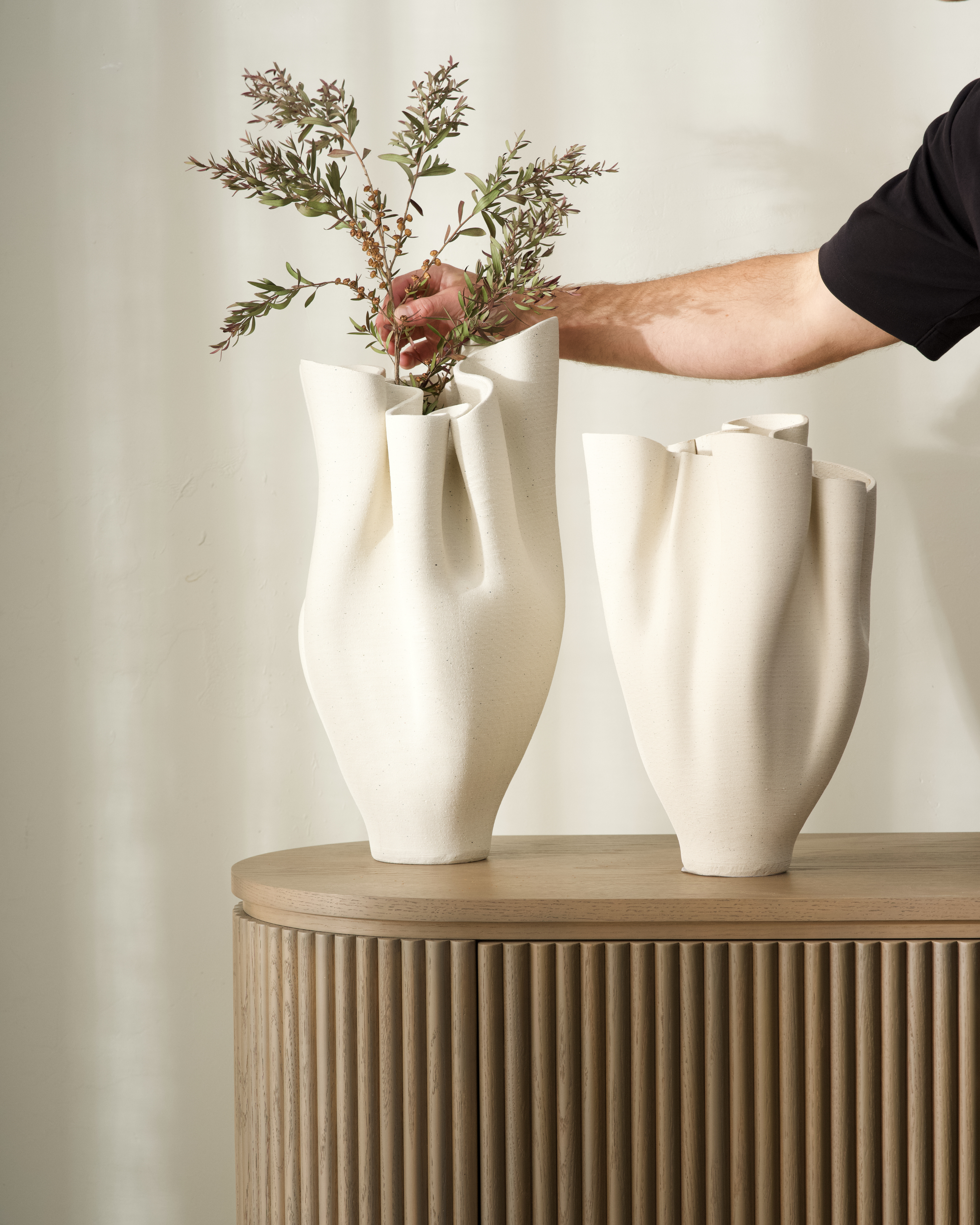 3D printed for precision, then hand-finished to highlight its organic form — beautiful on its own or styled as a pair.